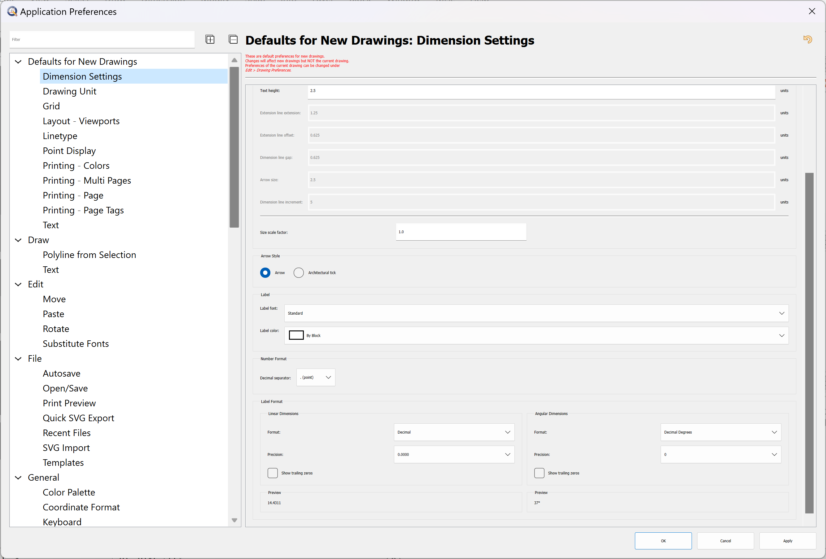 The text for the settings is too small, and requires me to hold my computer very close to my face to read. It wasn’t this way a few months ago. I don’t know what changed. Maybe it’s when I got my new computer, but I don’t think so. As you can see from the screenshot, the tree pane for selecting which page of settings isn’t affected by this problem, nor is the title of the dialog. The same problem affects both the Drawing Preferences and the Application Preferences. It also affects the Property Editor and the Layer Editor, the Command entry window and the Command output window. It may affect other components, but I haven’t tried to make an exhaustive inventory.