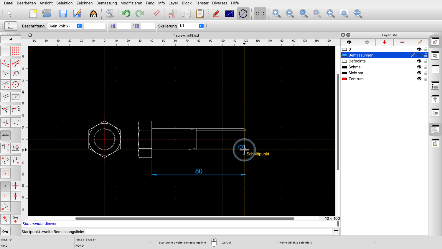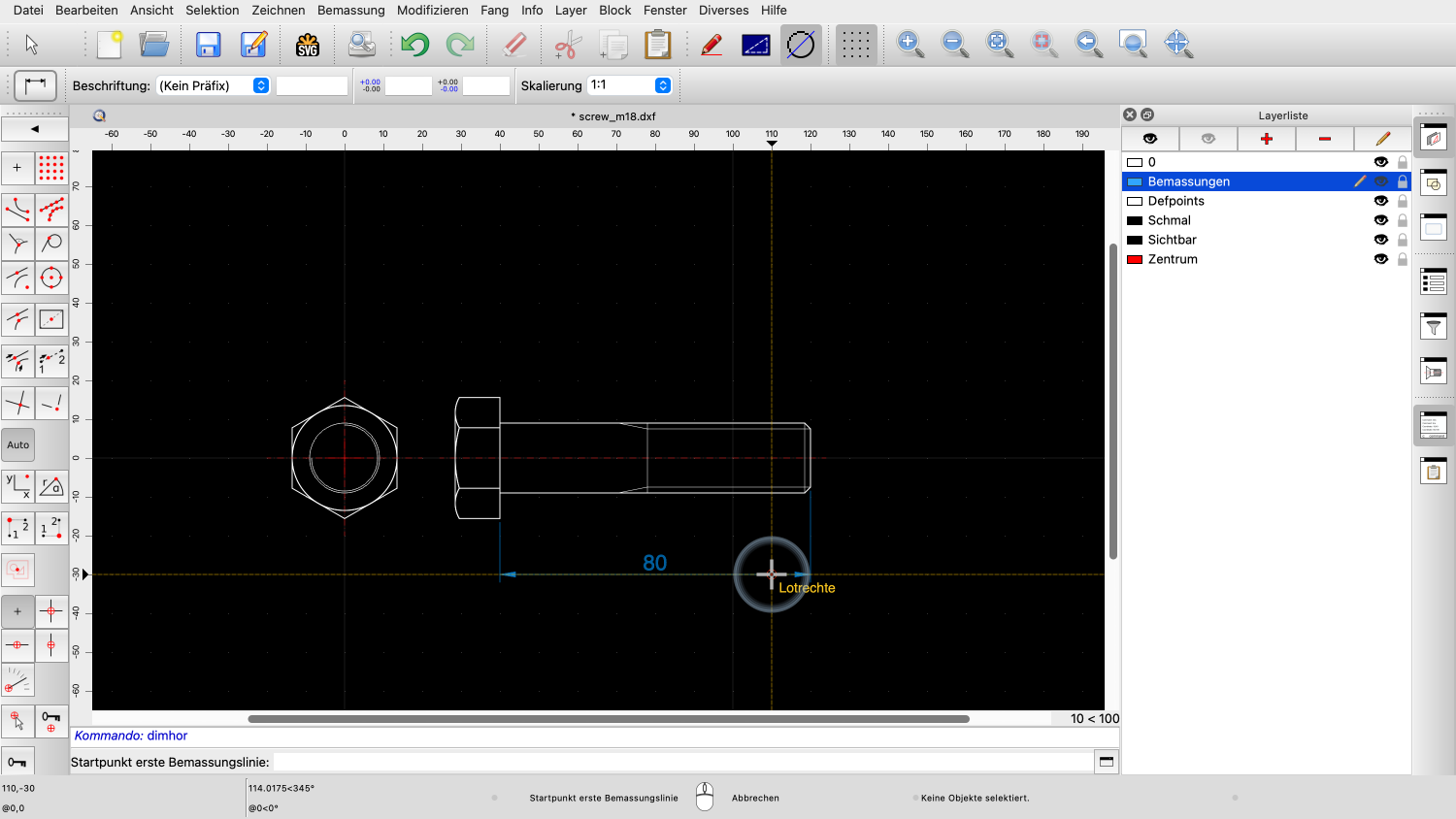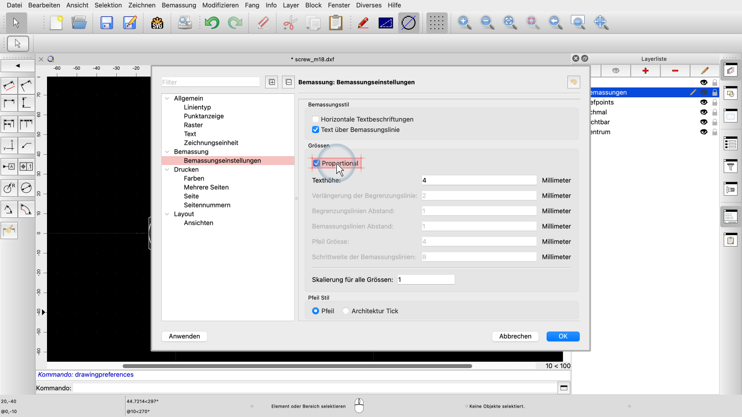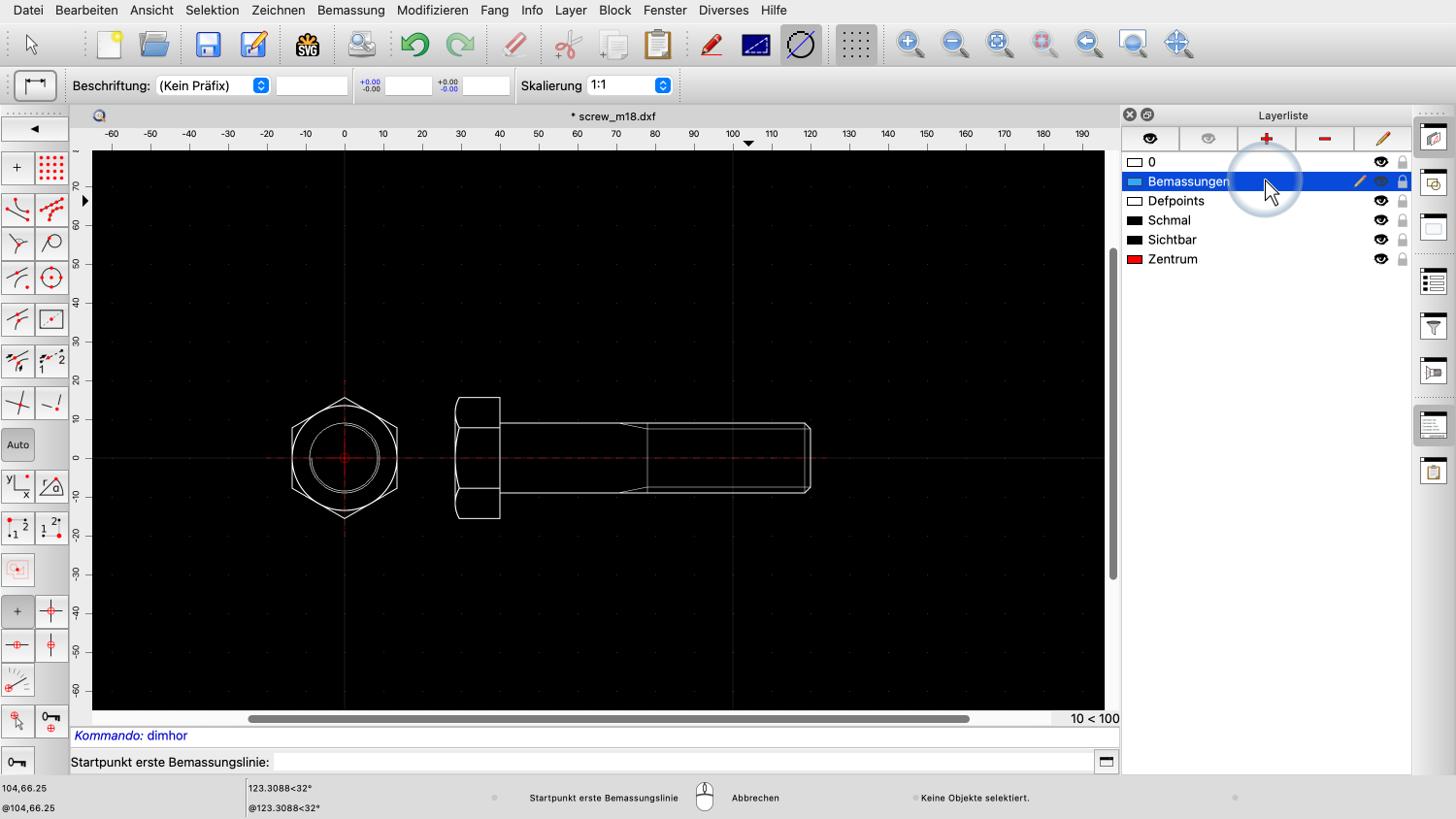 Hier verwenden wir den Layer "Bemassungen" für alle unsere Bemassungen.