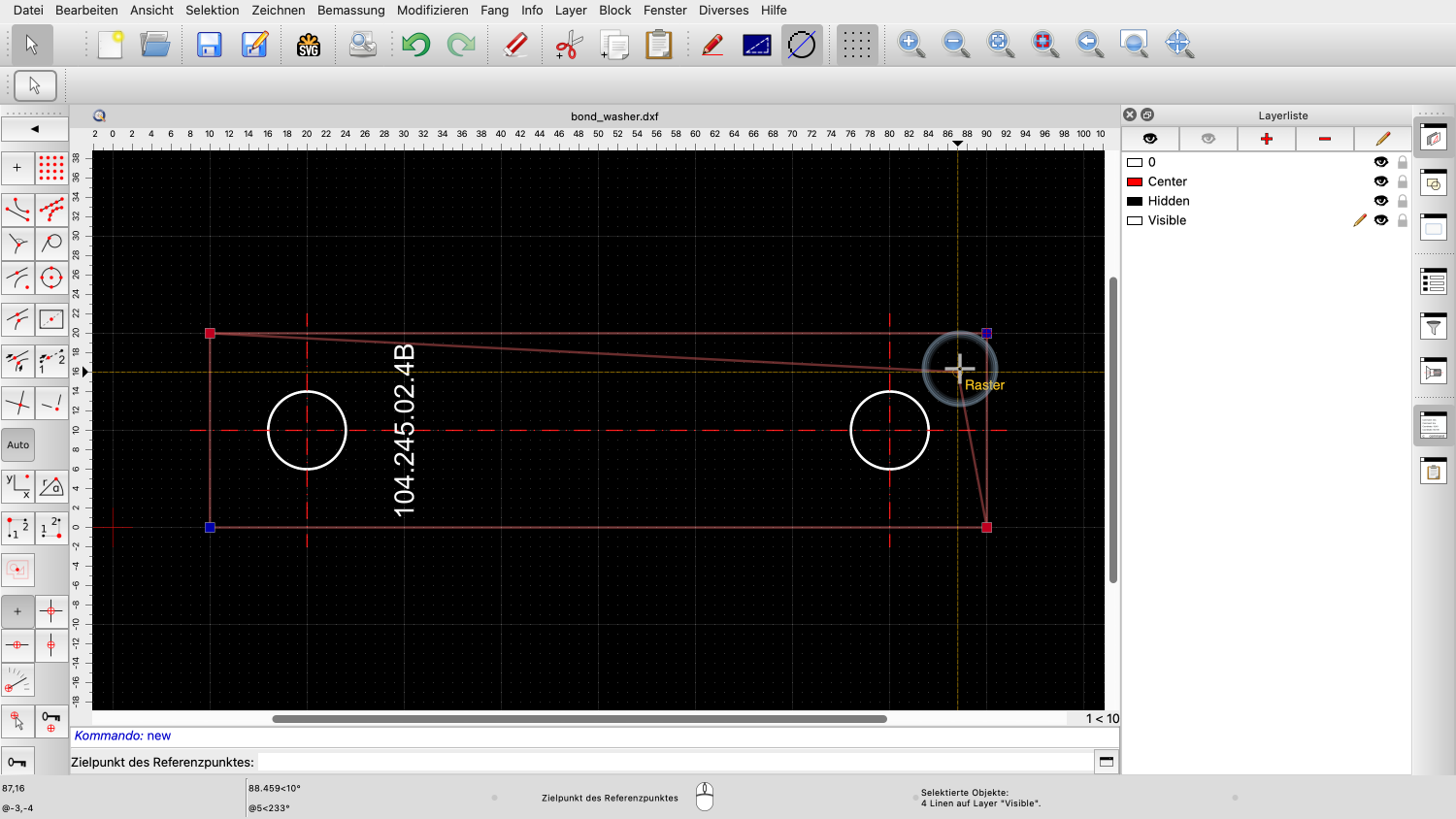 QCAD verwendet den Referenzpunkt, der dem Mauszeiger am nächsten liegt, um die Auswahl zu positionieren.
