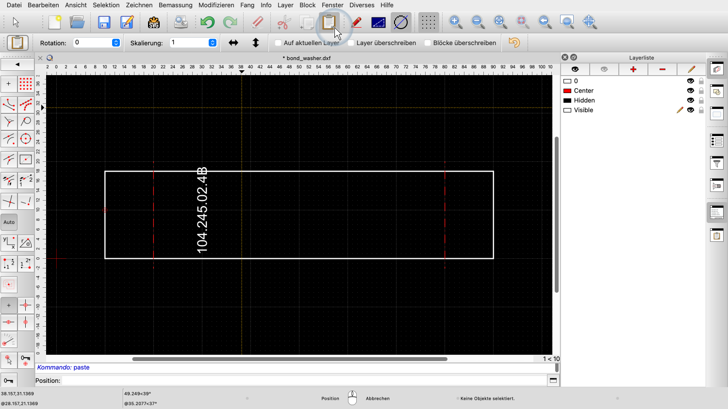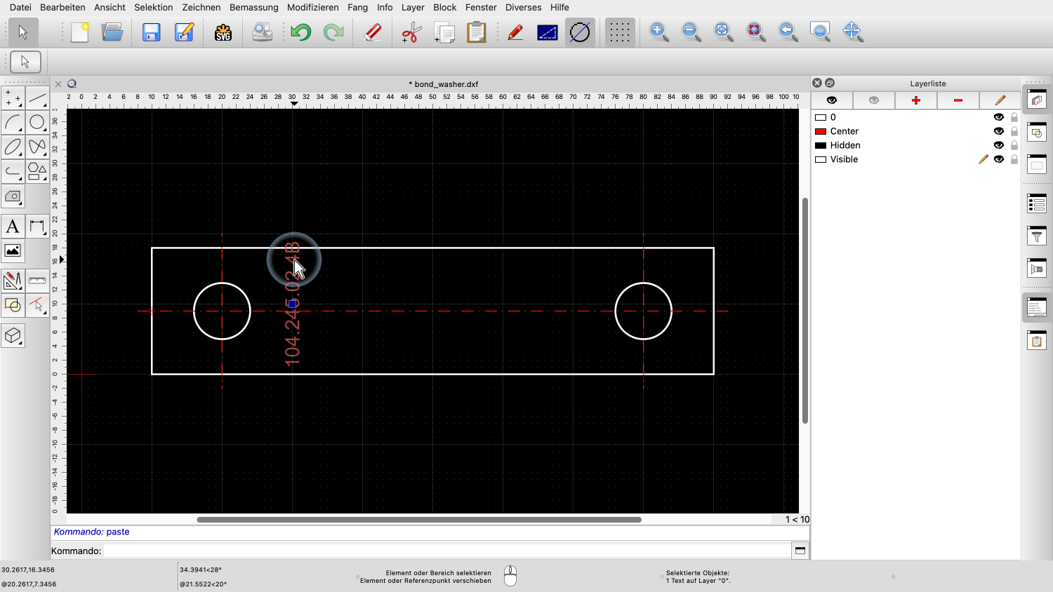 Der Text befindet sich jetzt in der Zwischenablage und wir können ihn wieder in die Zeichnung einfügen.