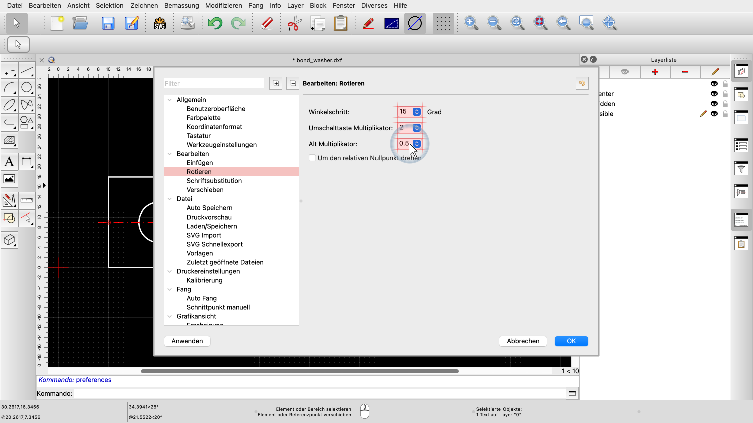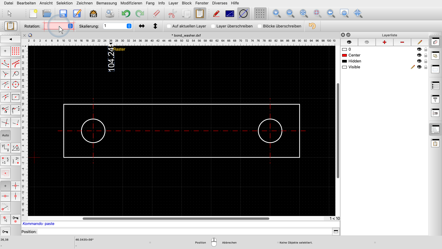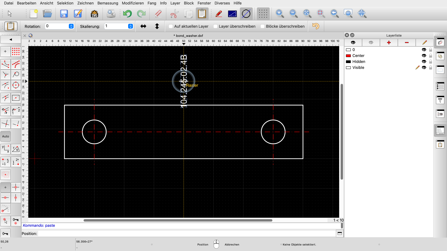 Die Mittellinie und die beiden Kreise befinden sich jetzt in der Zwischenablage von QCAD.