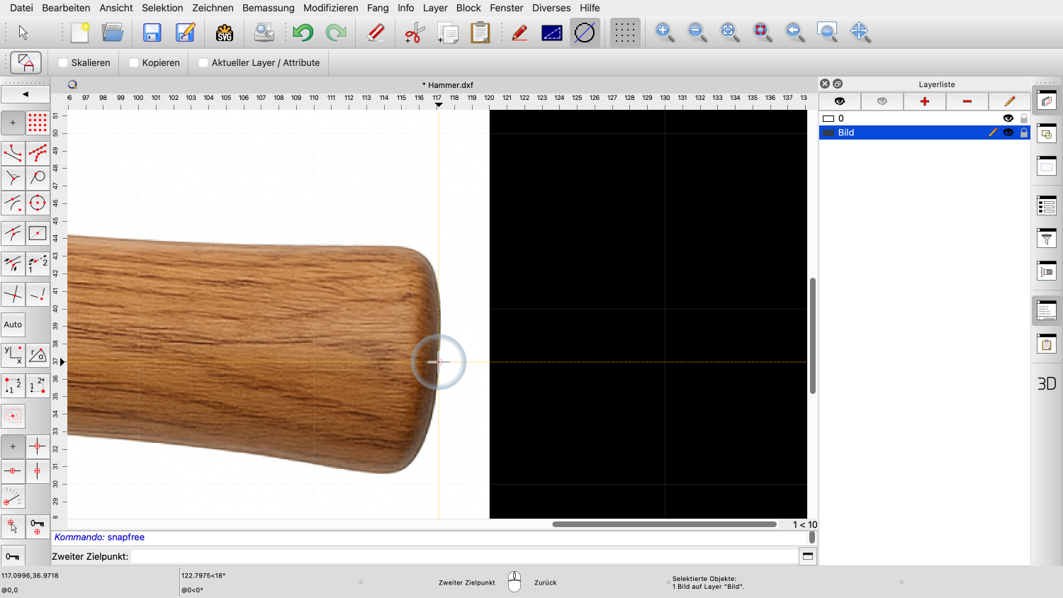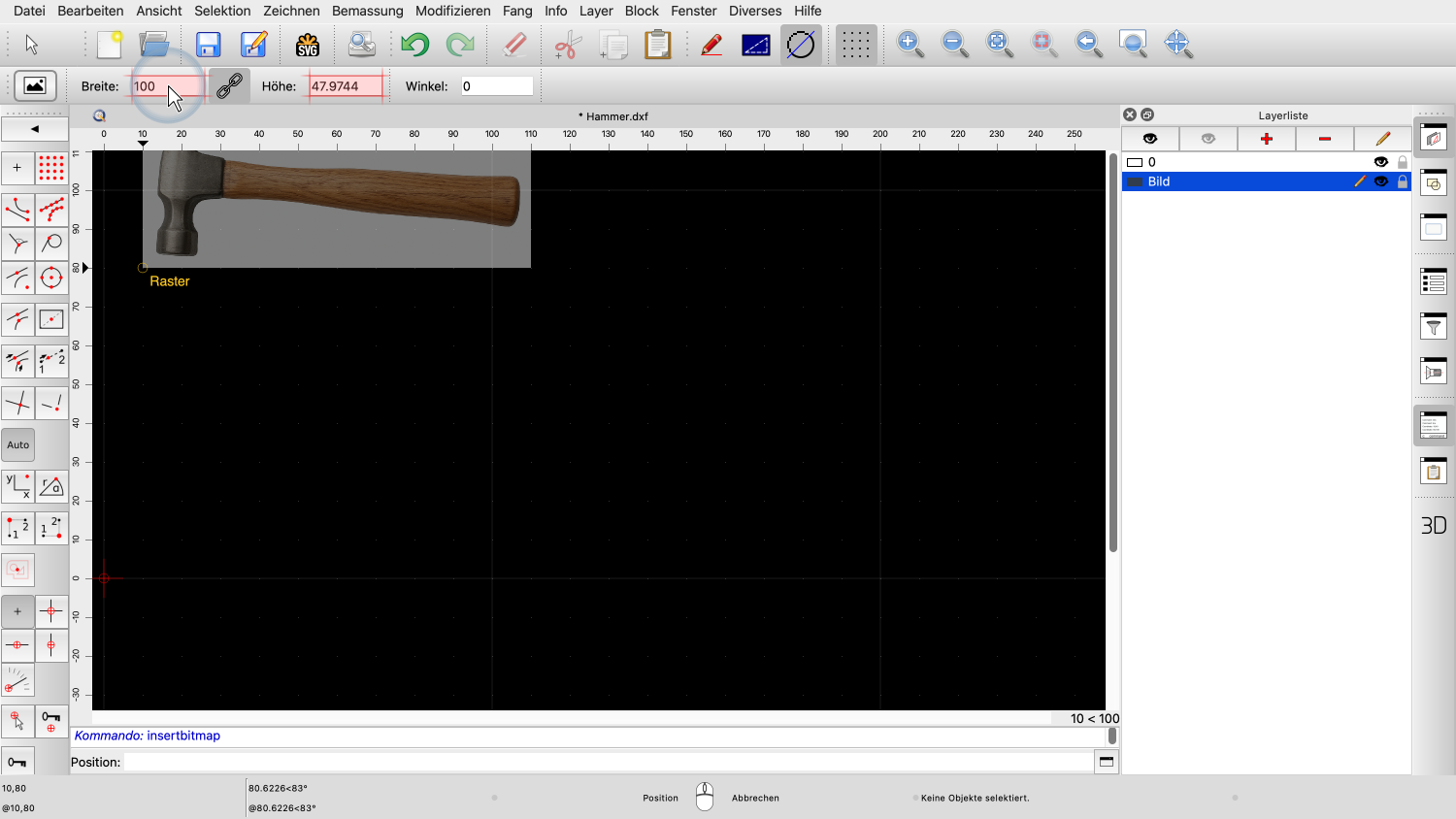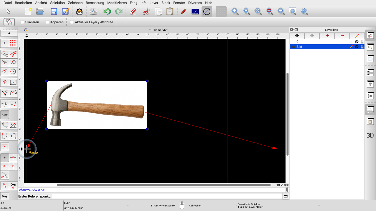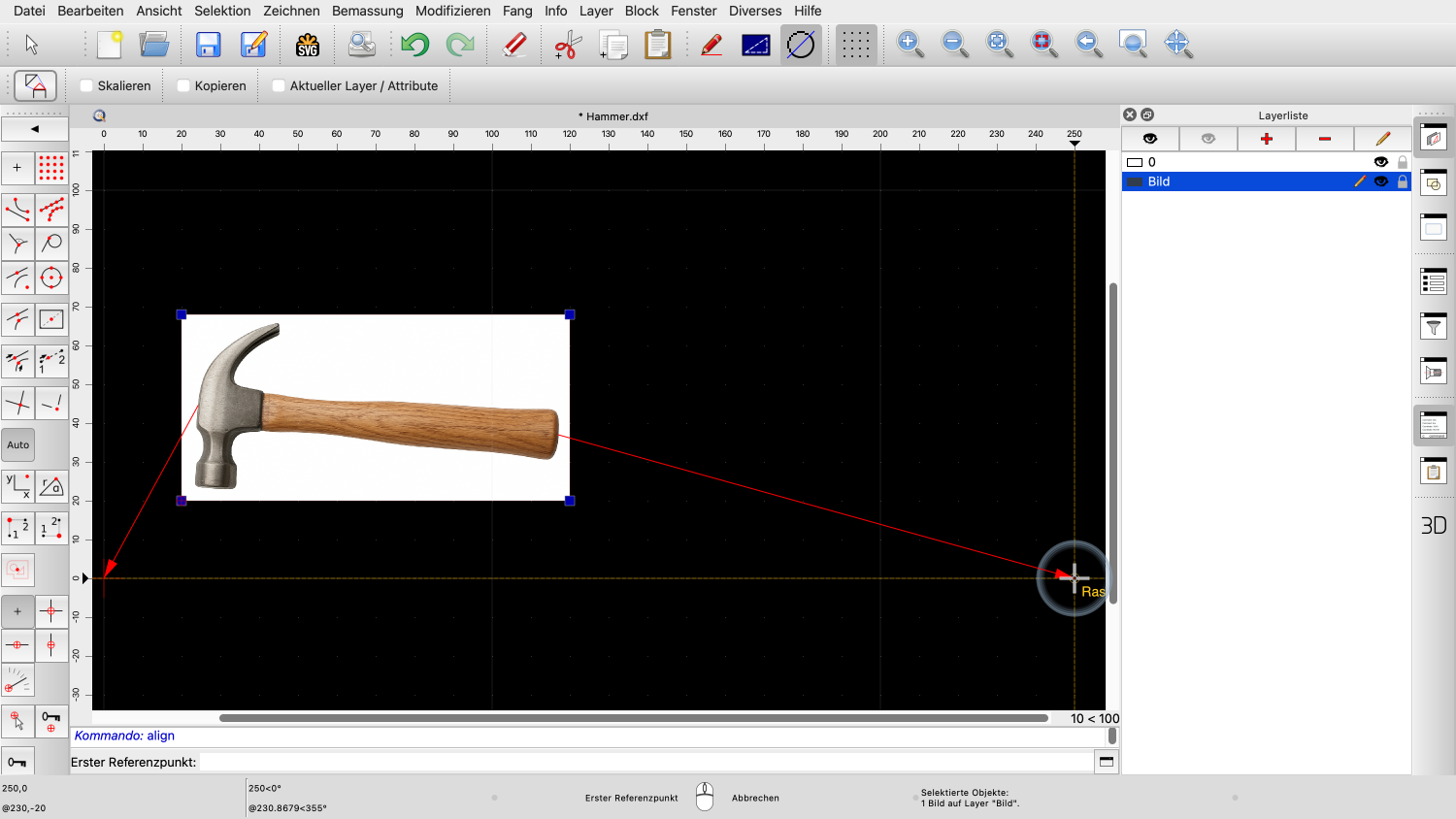 Wir können das Bild nun in unserer Zeichnung platzieren, mit der linken unteren Ecke als Referenzpunkt.