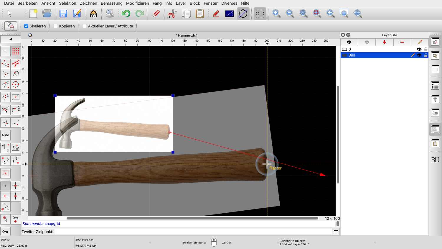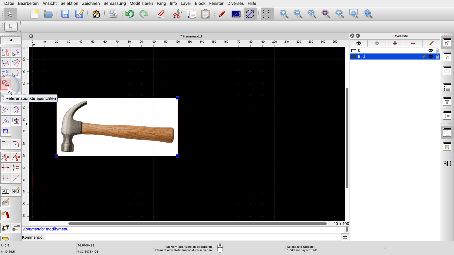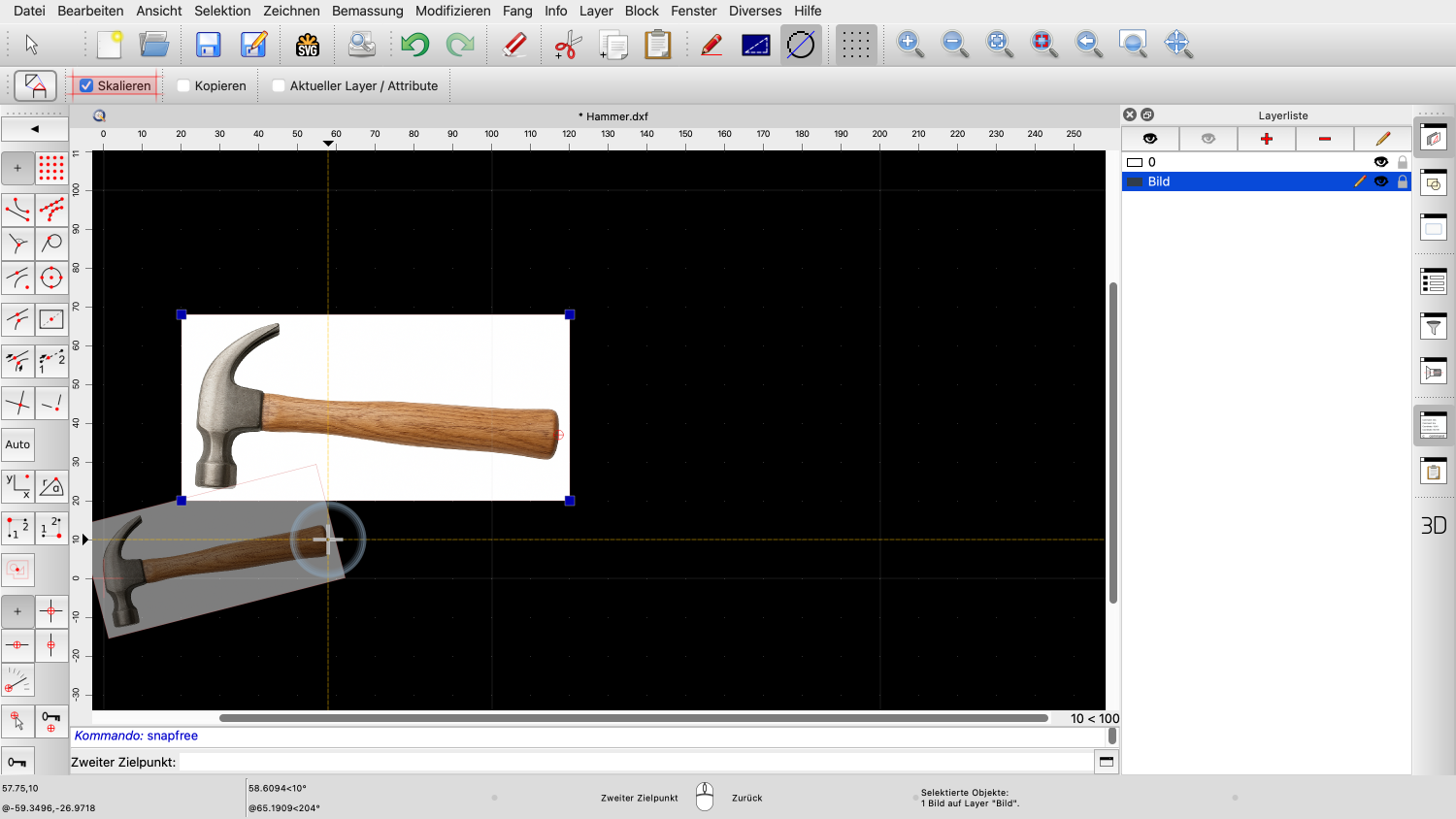 In den folgenden Schritten werden wir das Bild so skalieren und drehen, dass der Hammerstiel horizontal liegt und der Hammer die gewünschte Grösse hat.
