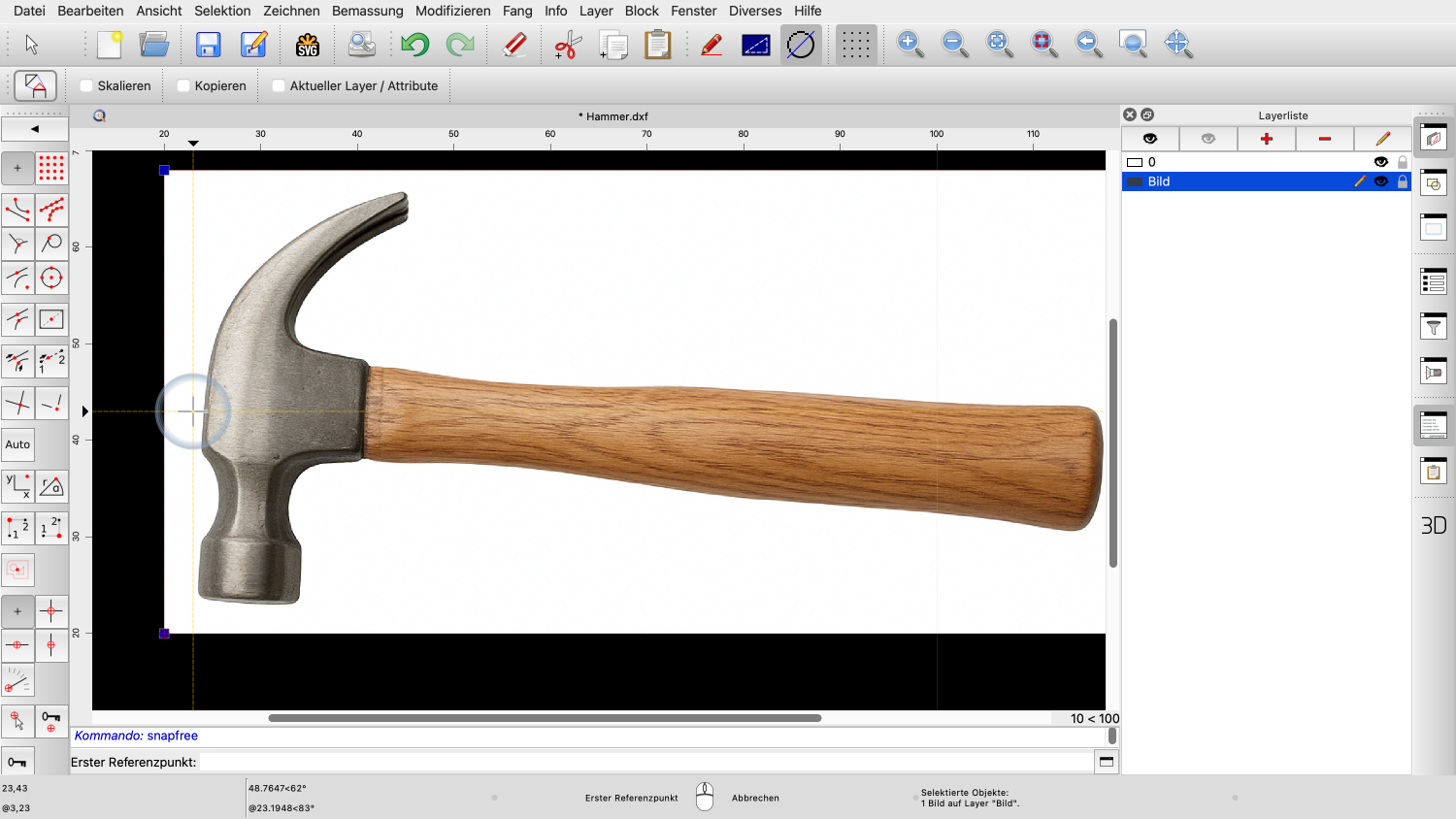 Dies ist nützlich, wenn wir einen gescannten Plan nachzeichnen, ein Foto als Vorlage verwenden oder eine handgezeichnete Skizze in eine CAD-Zeichnung umwandeln wollen.