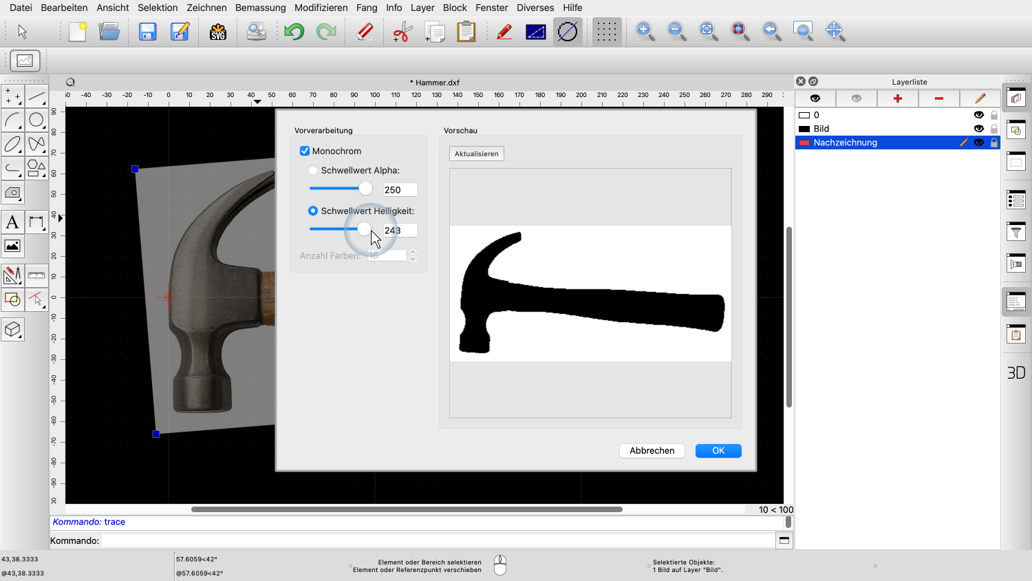 Dies zeigt den Nachzeichnungsdialog mit einer Vorschau unserer Bitmap.