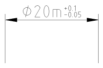 Кнопка со значком диаметра может быть использована чтобы показать значок диаметра перед размером. Используйте поле редактирования после этой кнопки чтобы ввести любой текст, отображаемый как размер. Меню содержит некоторые часто используемые символы. Выберите символы из списка чтобы вставить их в поле редактирования. Два поля редактирования справа обычно используются для допусков. Первое - для верхнего (например, +0.1) и второе - для внижнего допуска (например, -0.05). Смотрите Figures 37 и 38 для примера.