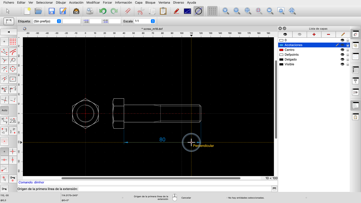 Aquí, utilizamos la capa "Acotaciones" para todas nuestras entidades de acotación.
