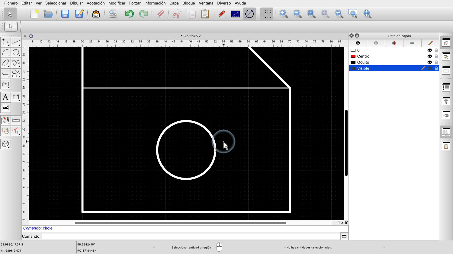 Añadimos el círculo en la capa "Visible", ya que representa un borde visible de una perforación.