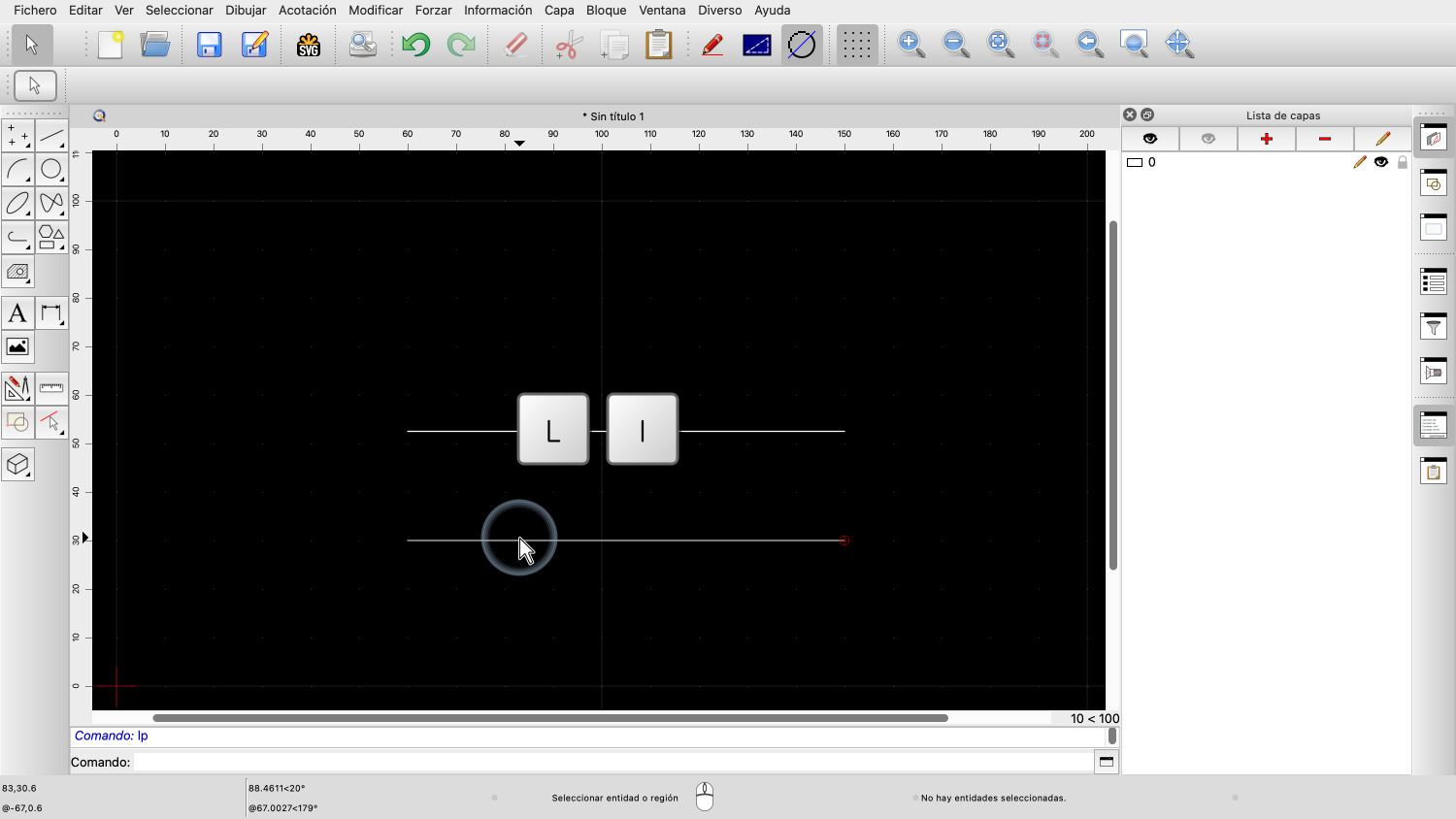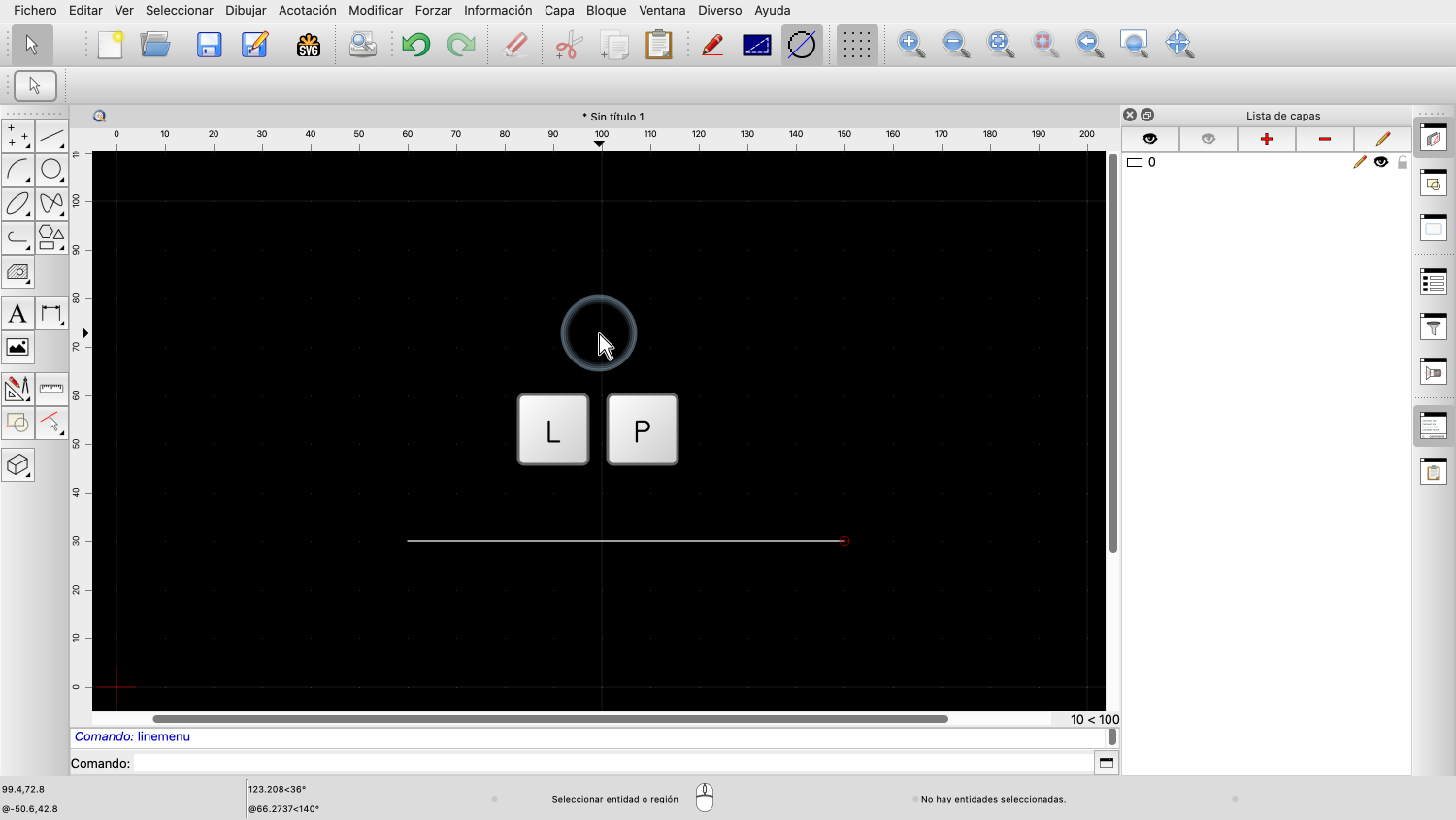 Para iniciar la herramienta de línea, podemos pulsar primero la tecla "L" y después la tecla "I".