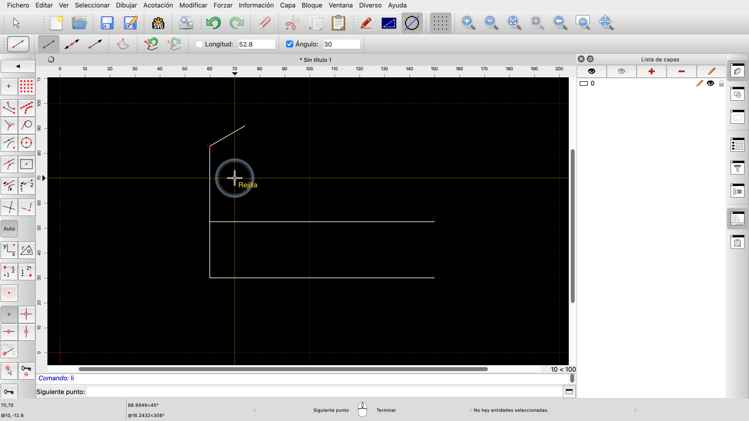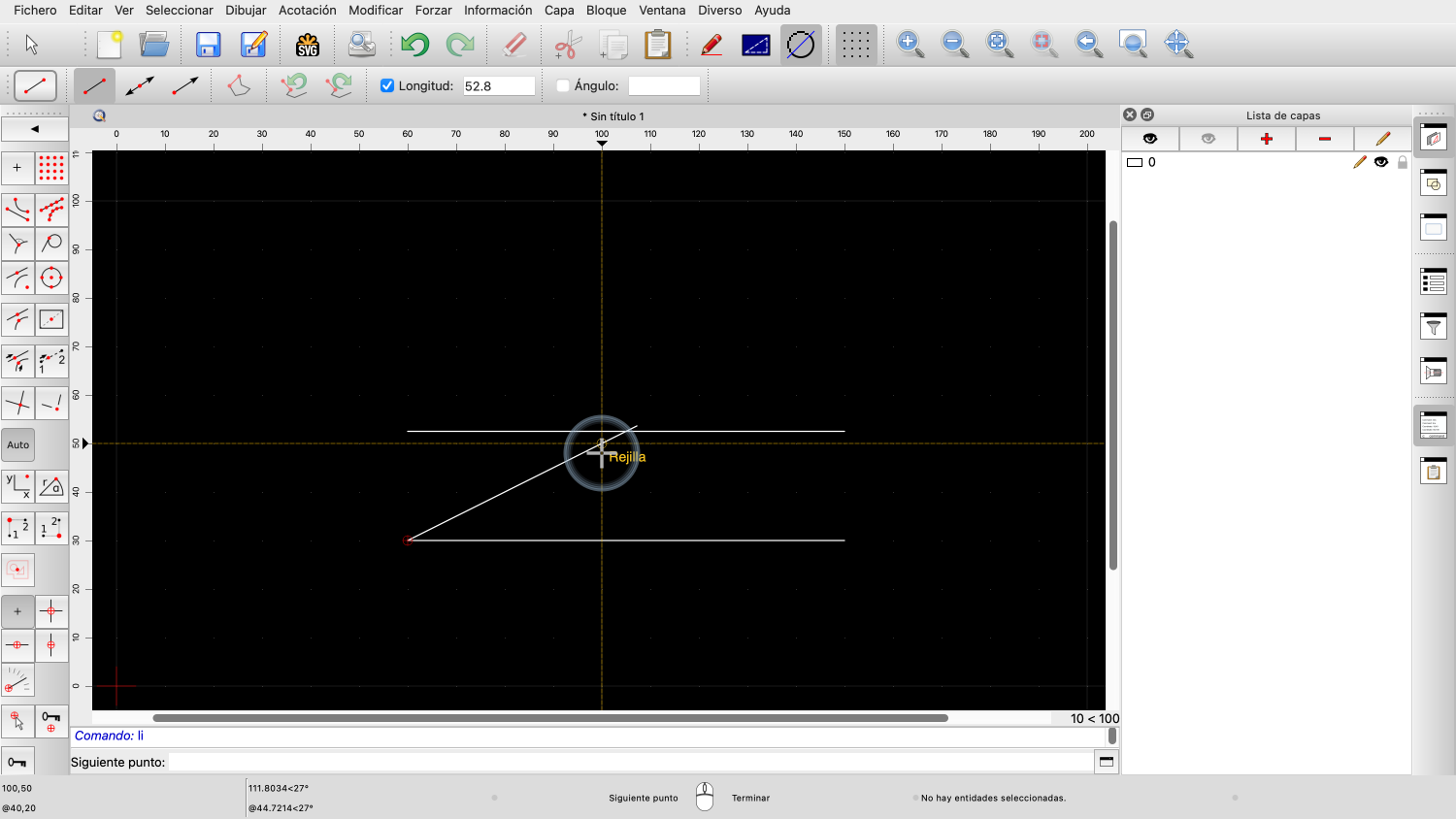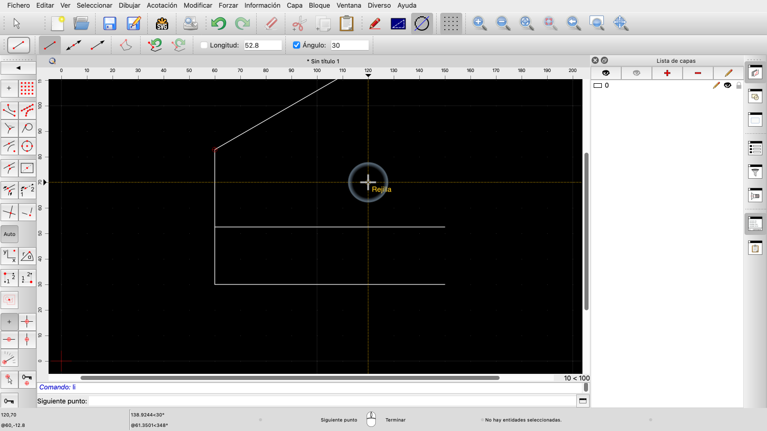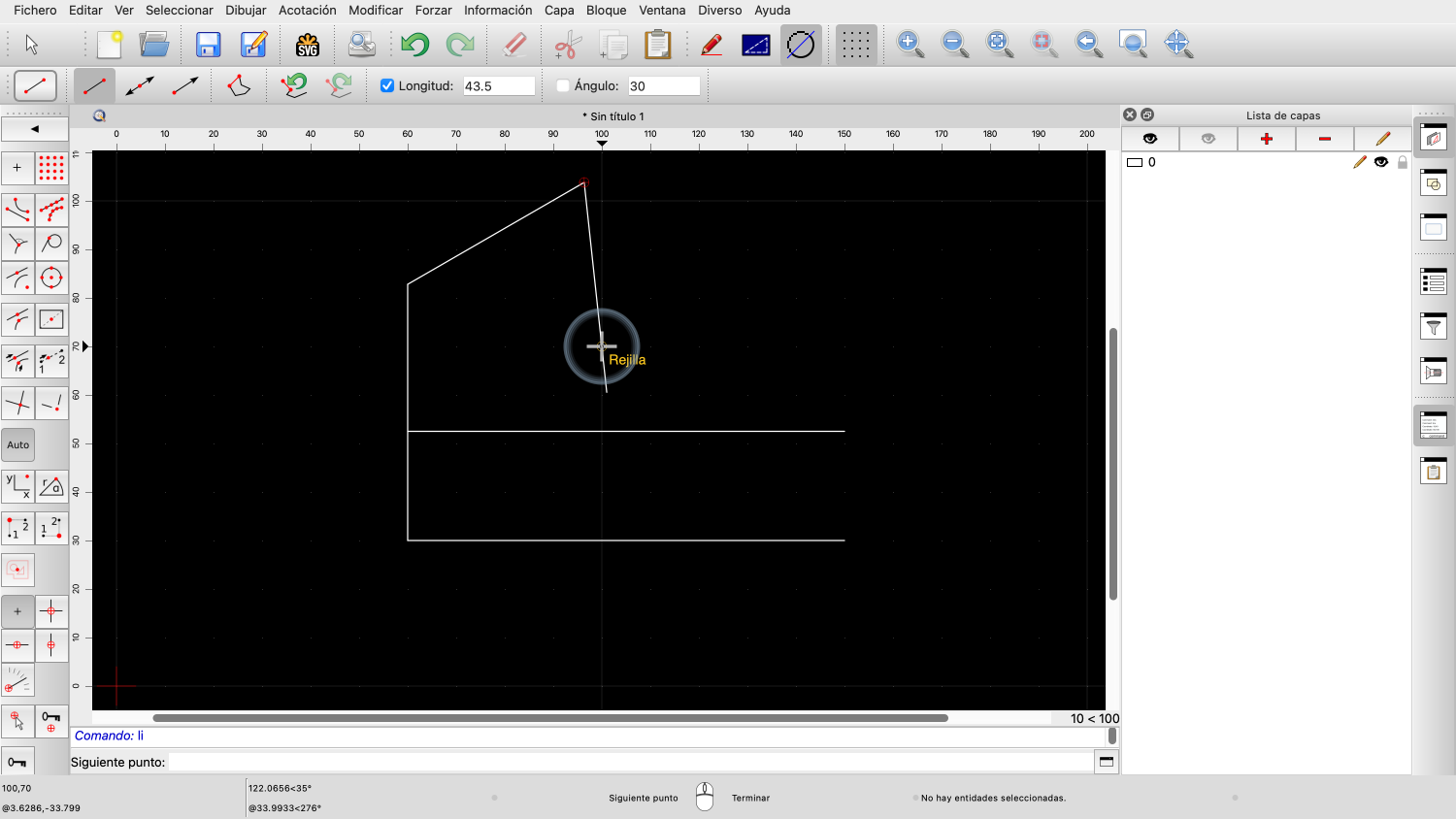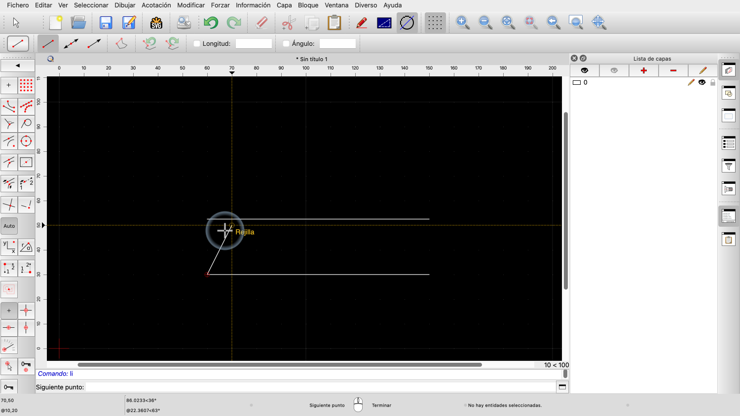Una vez fijado el ángulo, podemos definir la longitud de la línea con el ratón.