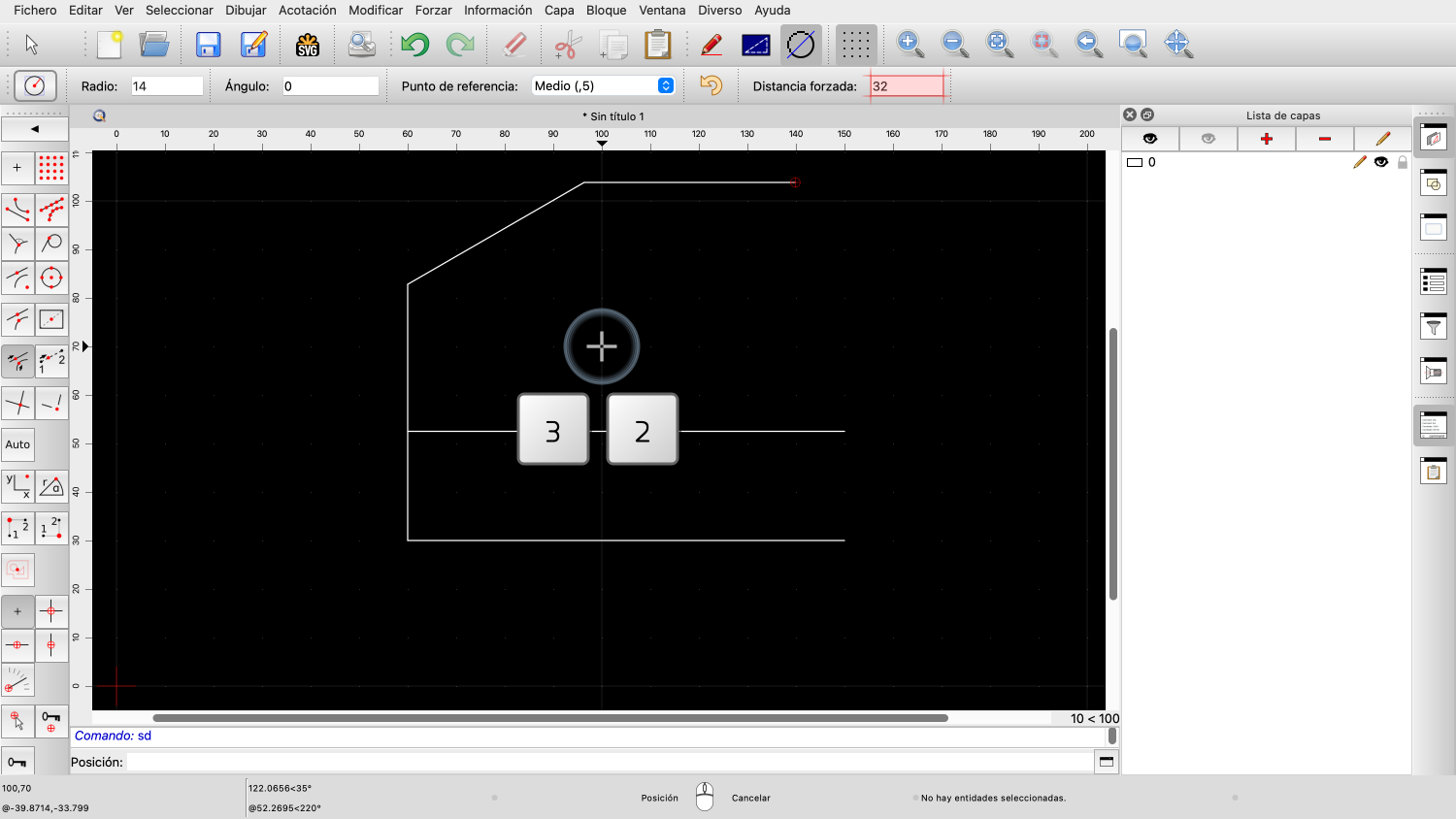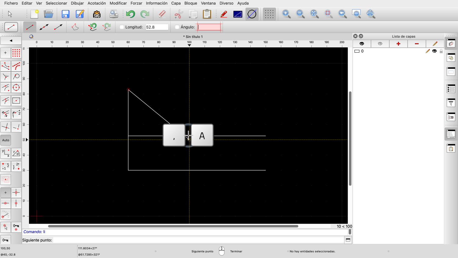 Pulsamos la tecla coma y, a continuación, la tecla "A" de nuestro teclado para activar el campo de entrada angular.