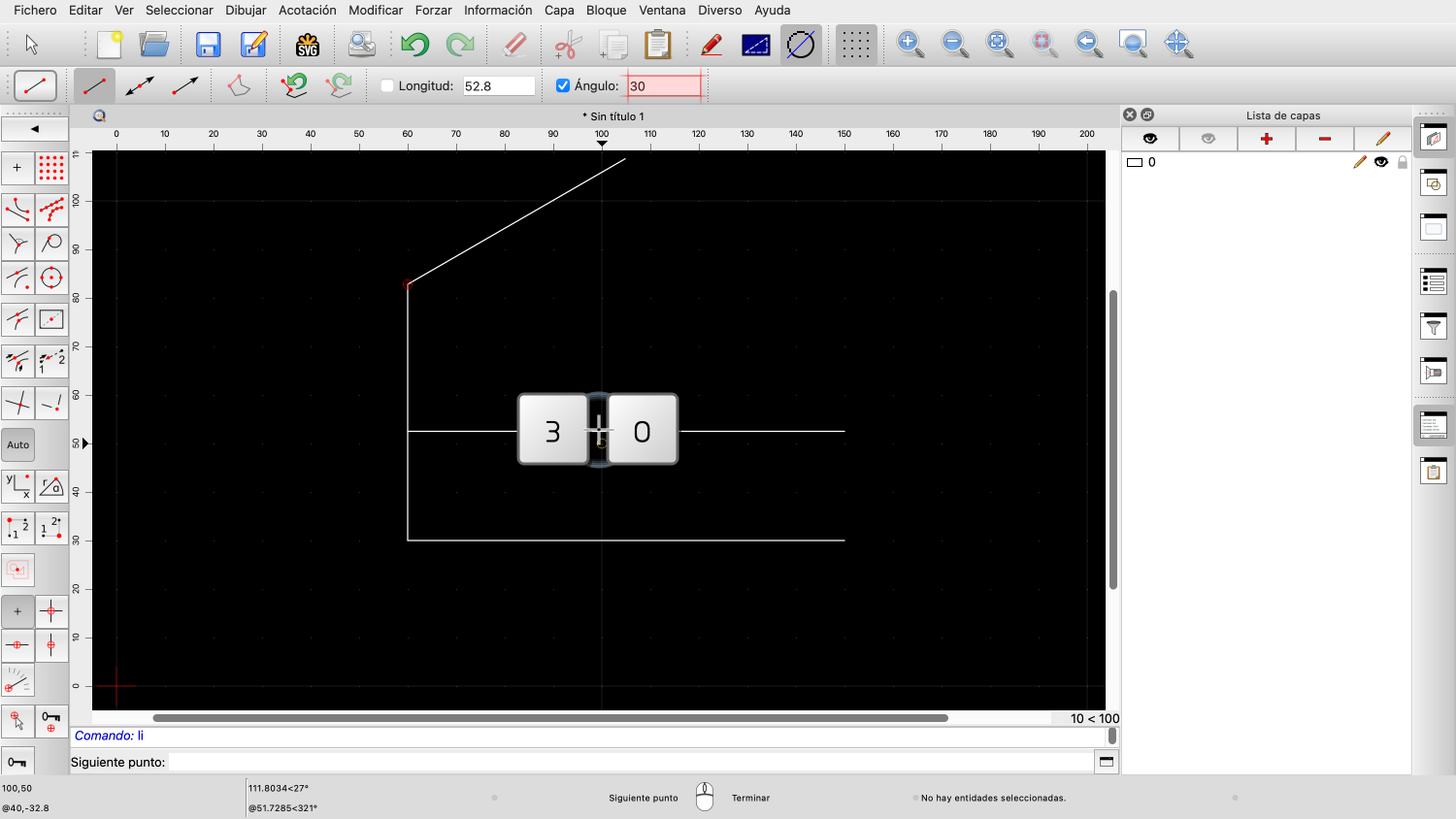 Para este ejemplo, queremos dibujar una línea con una longitud de 52,8 unidades de dibujo.