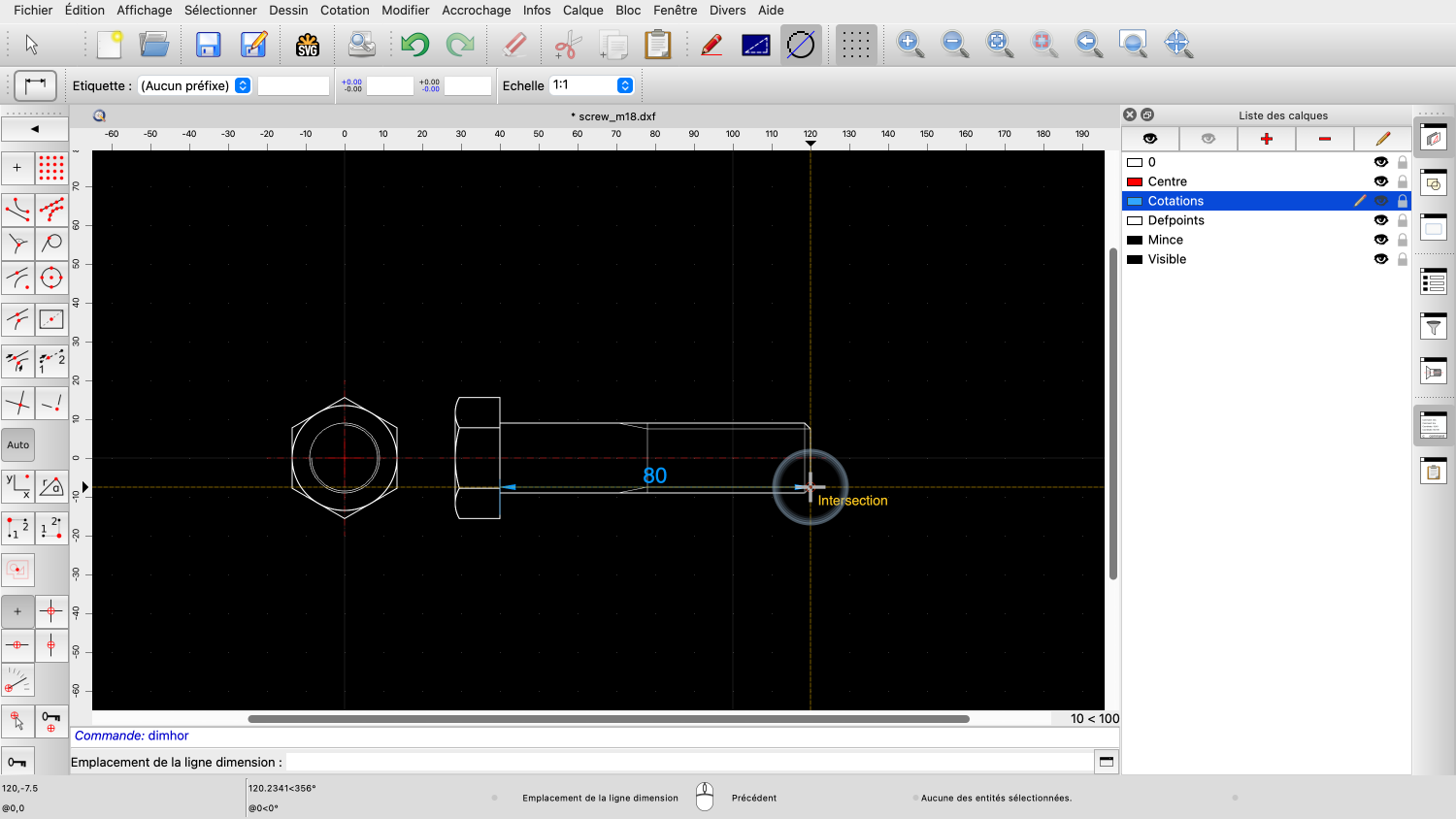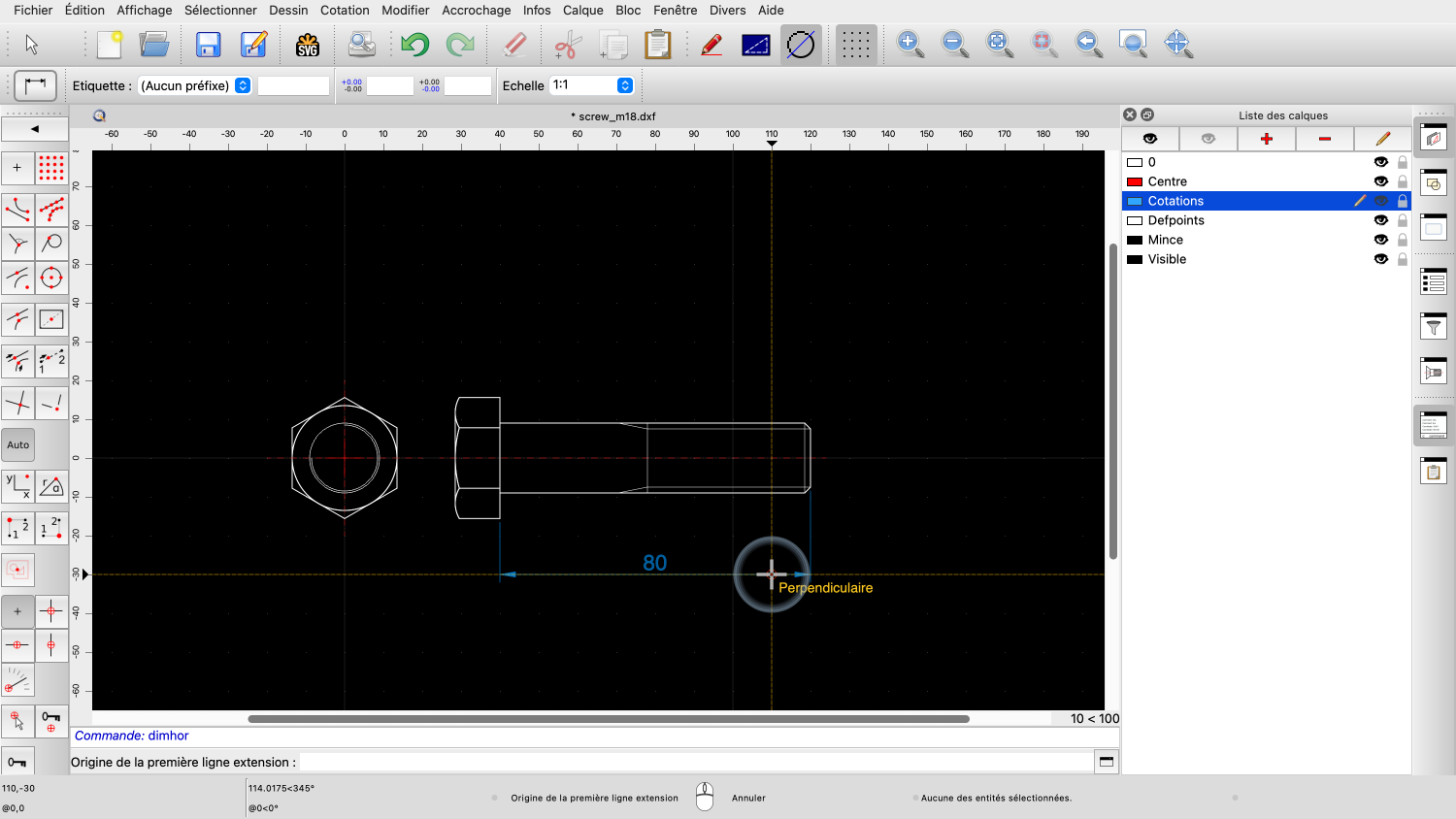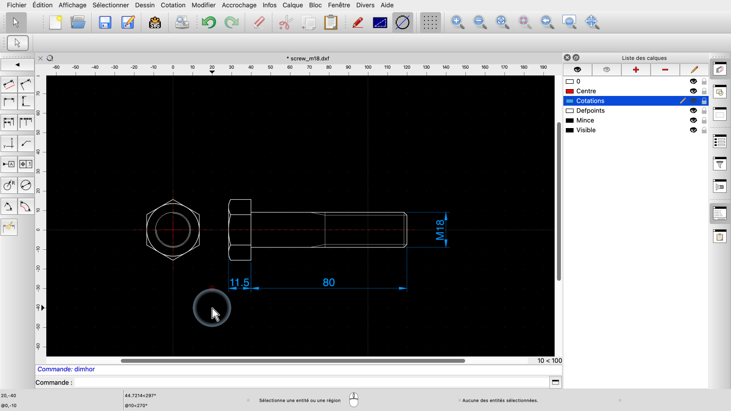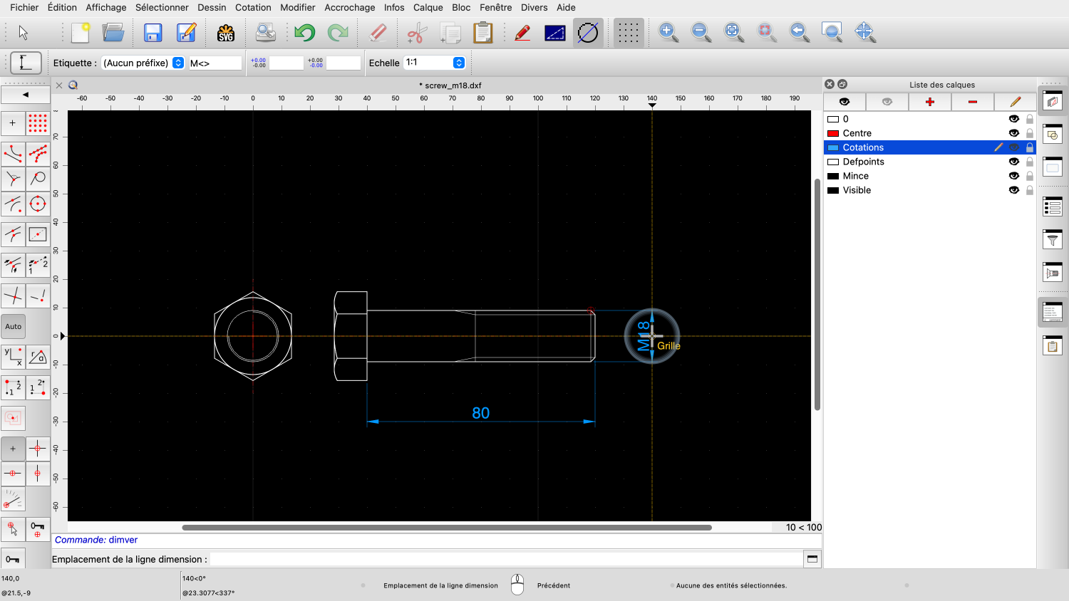 Ici, nous utilisons le calque "Cotations" pour toutes nos entités de cotation.