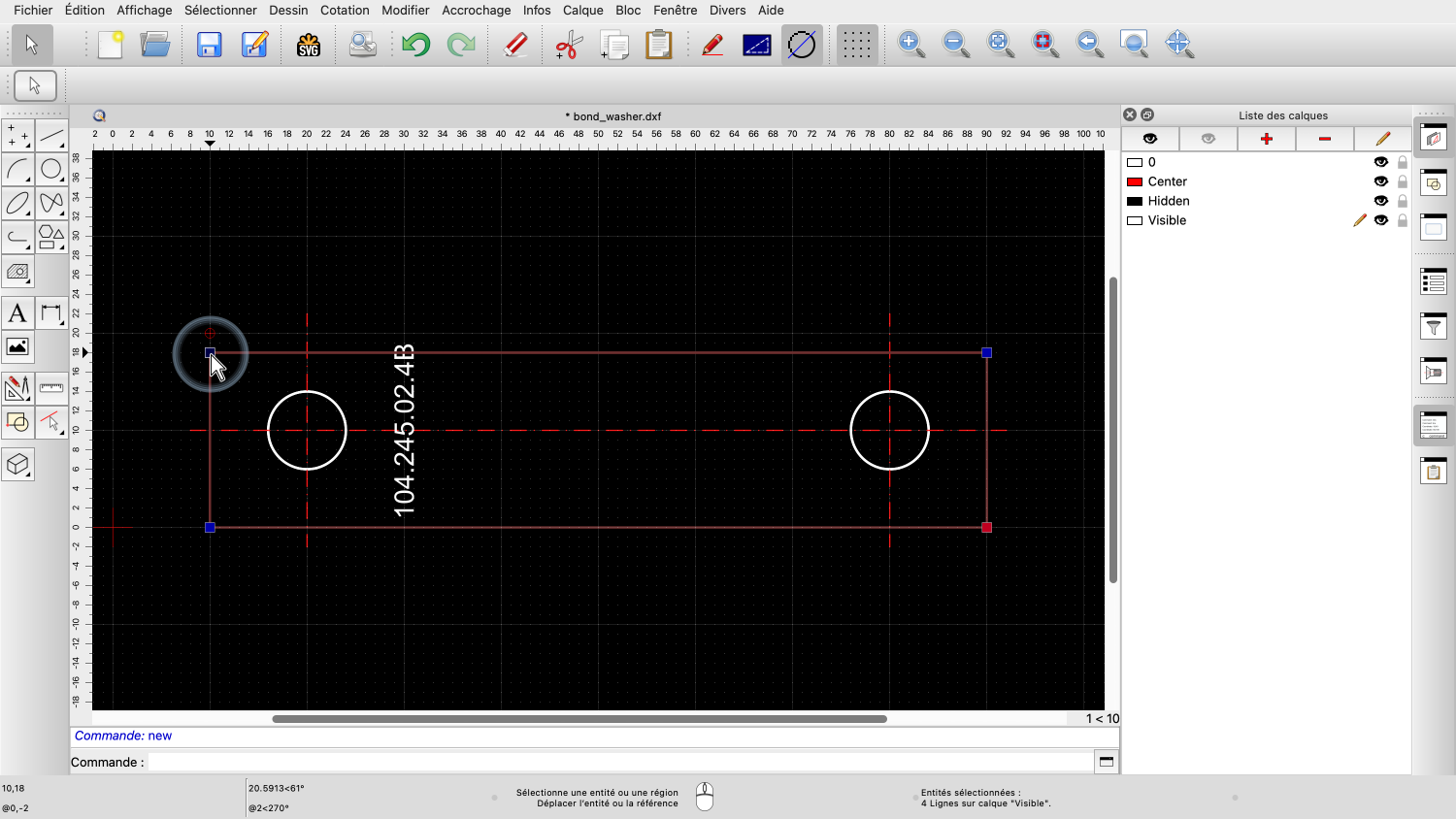 Puisque les quatre entités que nous voulons sélectionner sont toutes connectées, ce qui est souvent le cas, QCAD offre également un moyen plus facile de sélectionner ces entités.