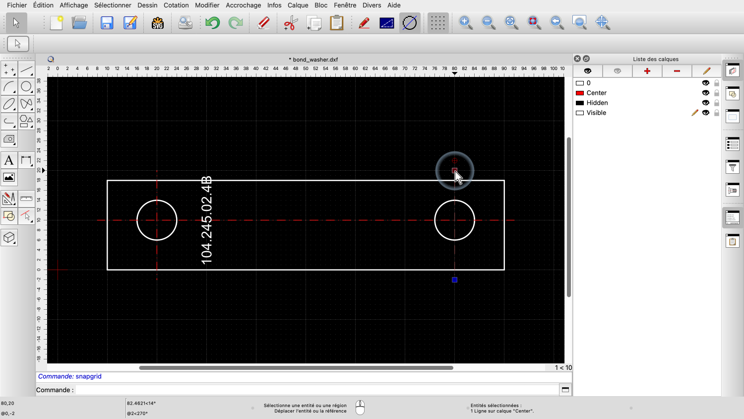 QCAD utilise le point de référence le plus proche du pointeur de la souris pour positionner la sélection.