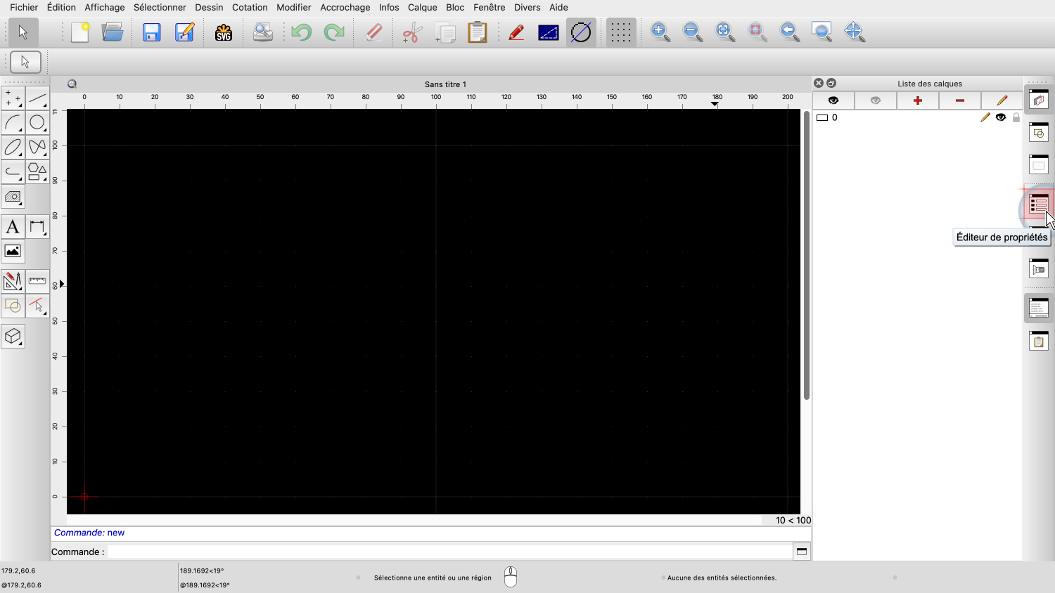 Avant de pouvoir utiliser l'éditeur de propriétés, notre dessin doit comporter au moins une entité sélectionnée.