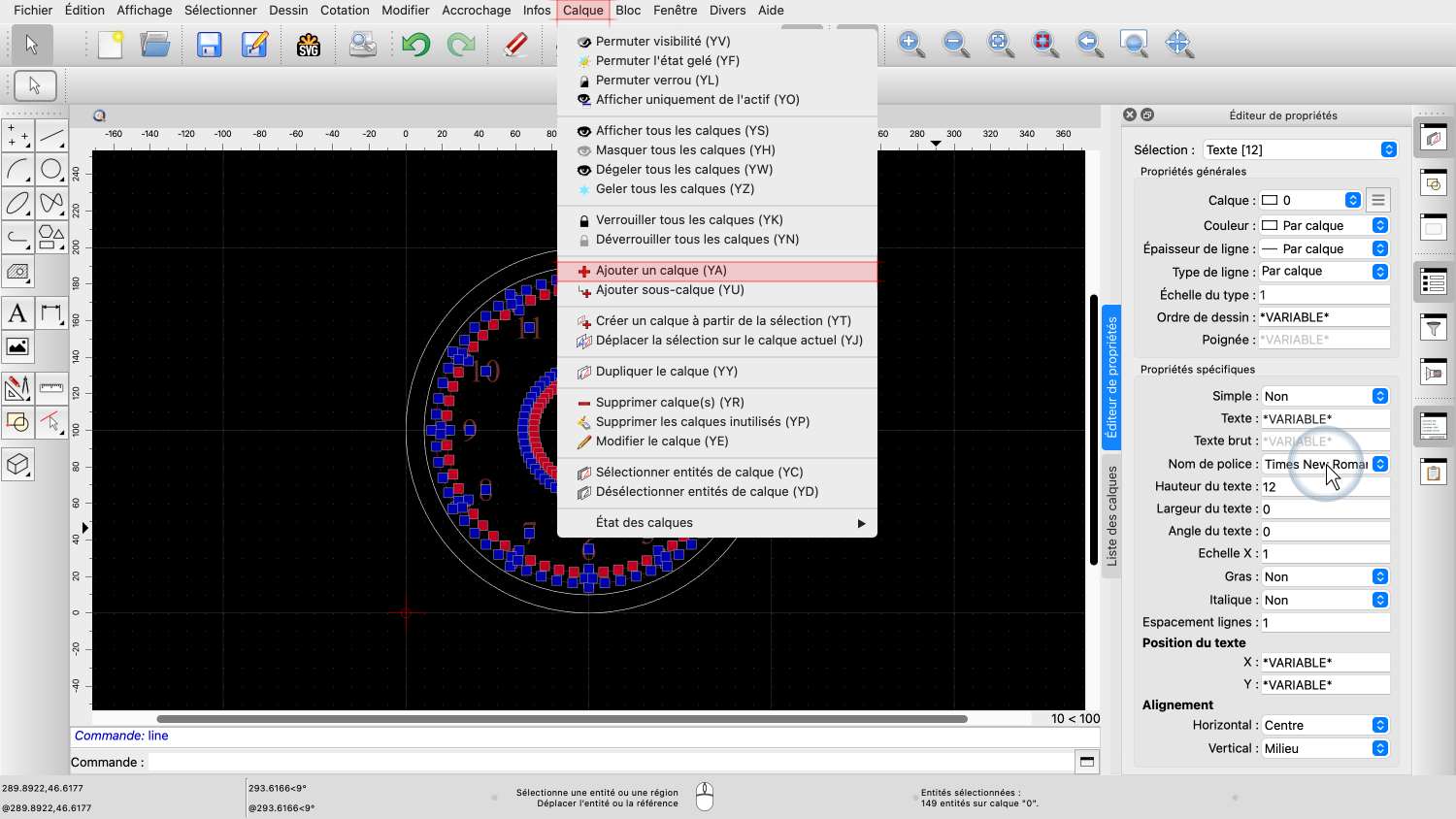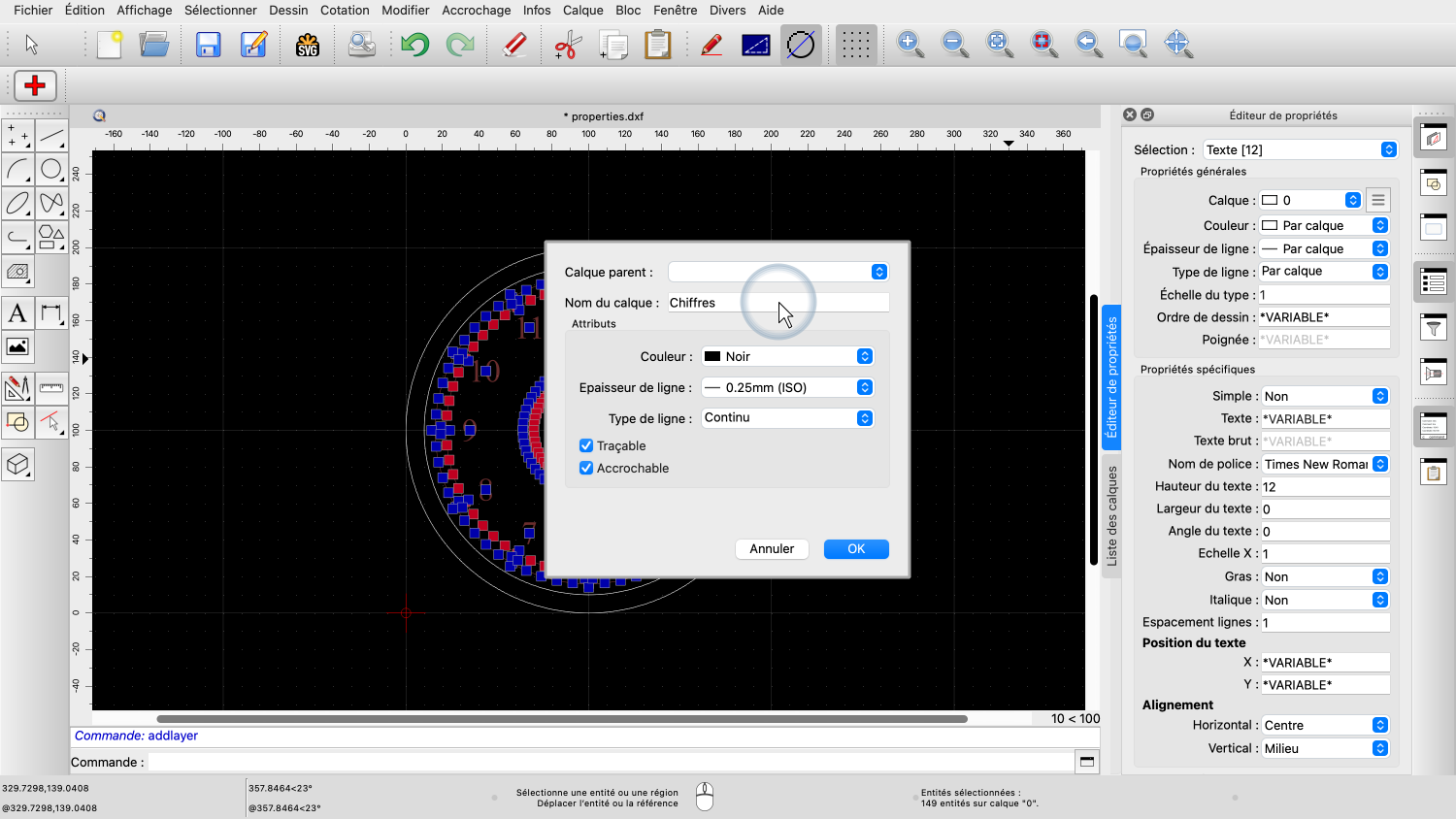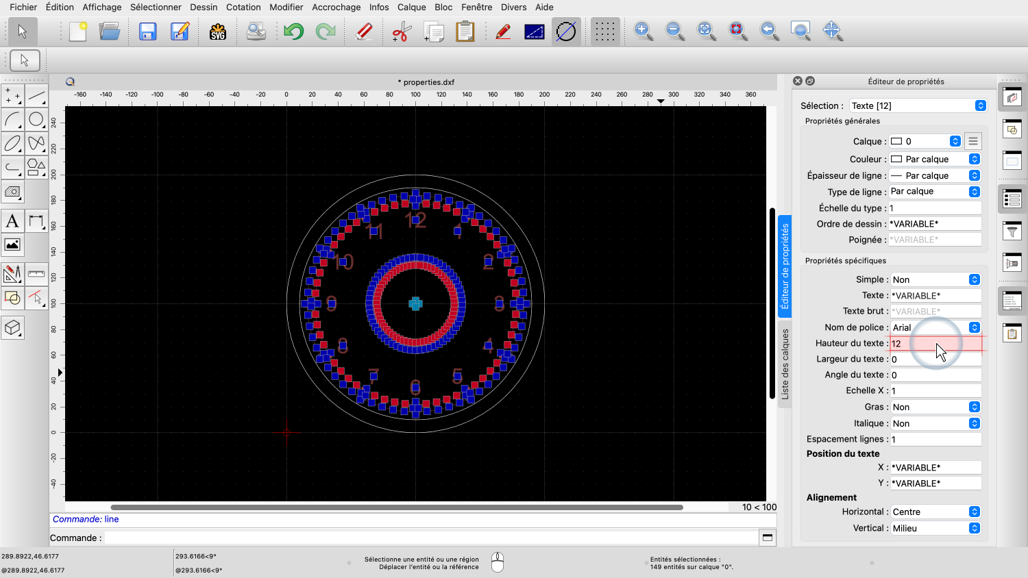 Le nombre entre crochets indique qu'il y a 12 entités textuelles sélectionnées et que nos changements de propriétés n'affecteront que ces 12 entités.