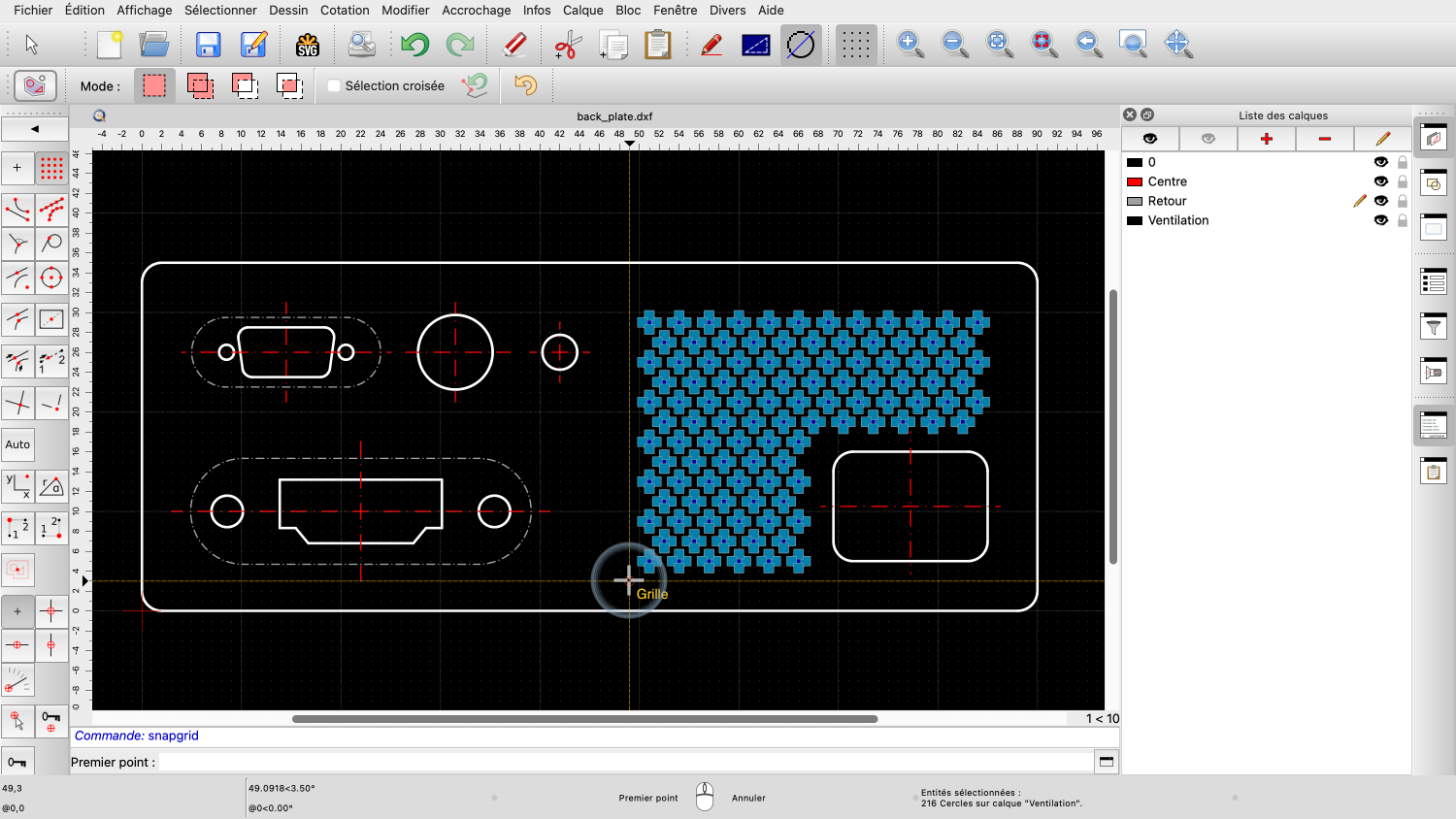 Comme tous les trous d'aération se trouvent sur le même calque, c'est un moyen rapide de les sélectionner tous en une seule fois.