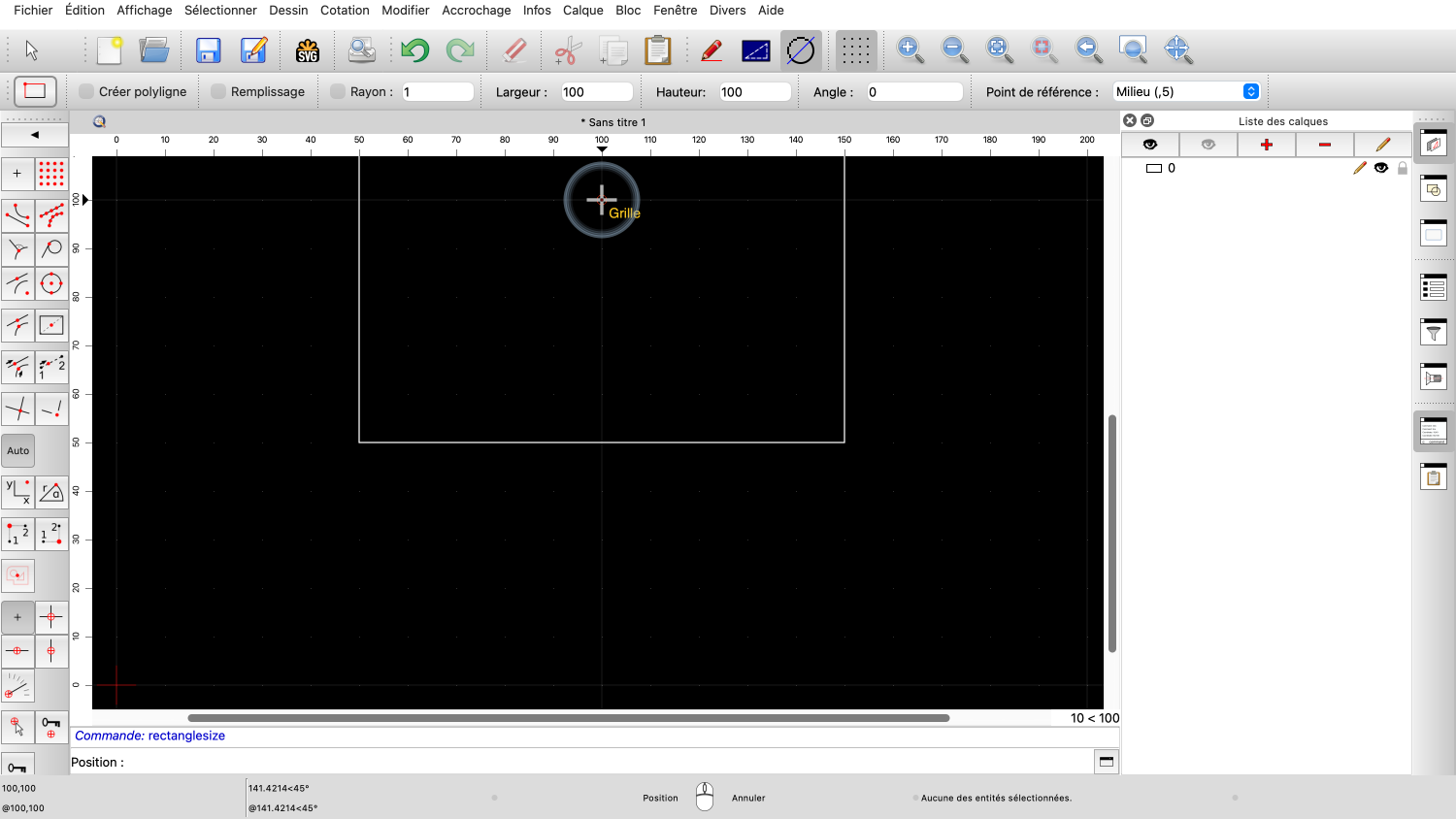 Nous saisissons les dimensions du rectangle comme 100 par 100 unités.