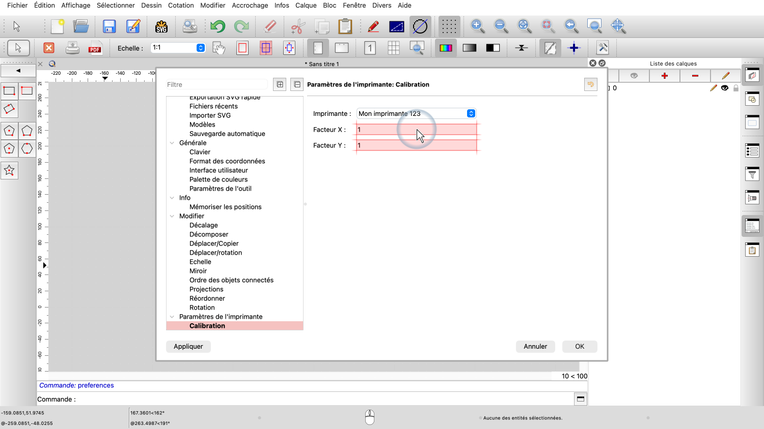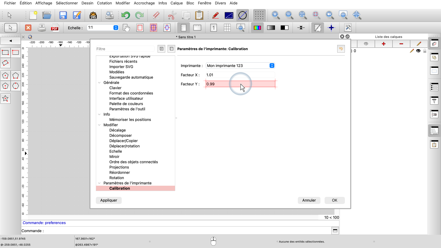 QCAD appliquera ces facteurs chaque fois que nous imprimerons un dessin avec cette imprimante, compensant ainsi les imprécisions de notre imprimante.
