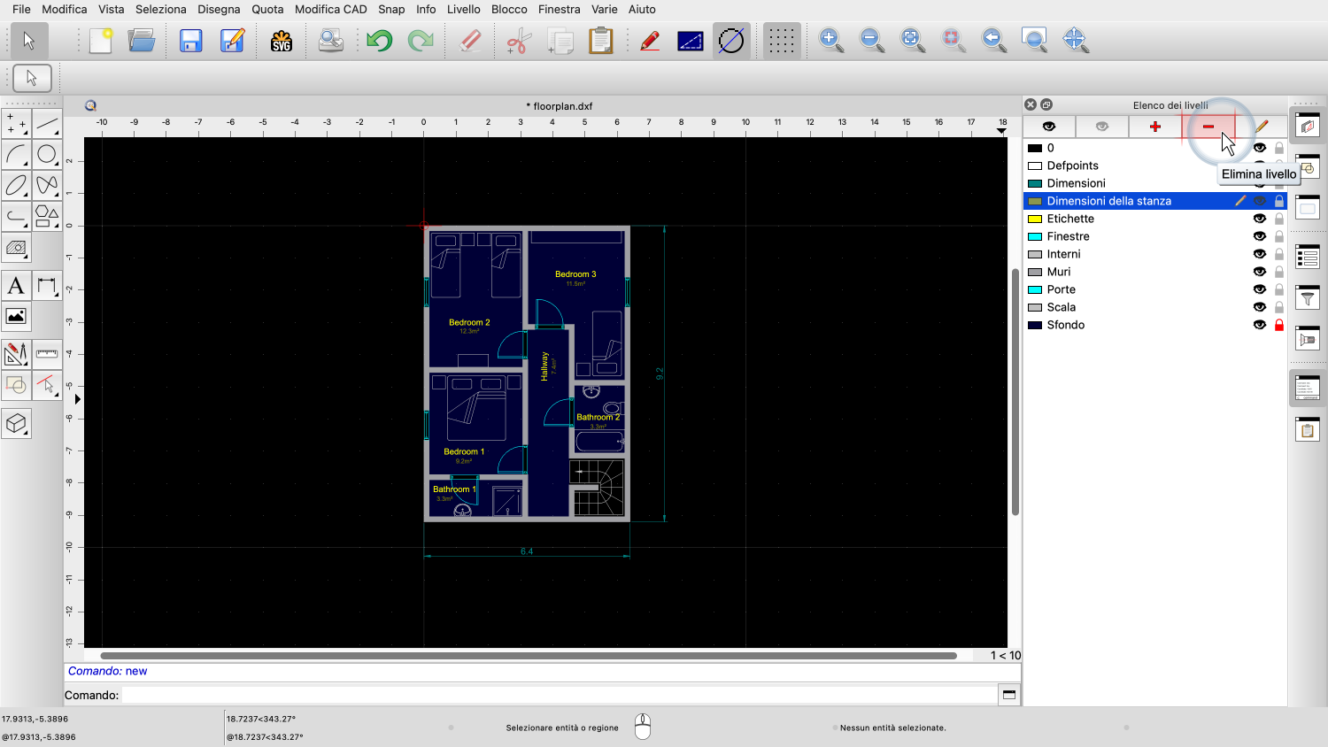 Possiamo anche scegliere di eliminare completamente un livello dal disegno.