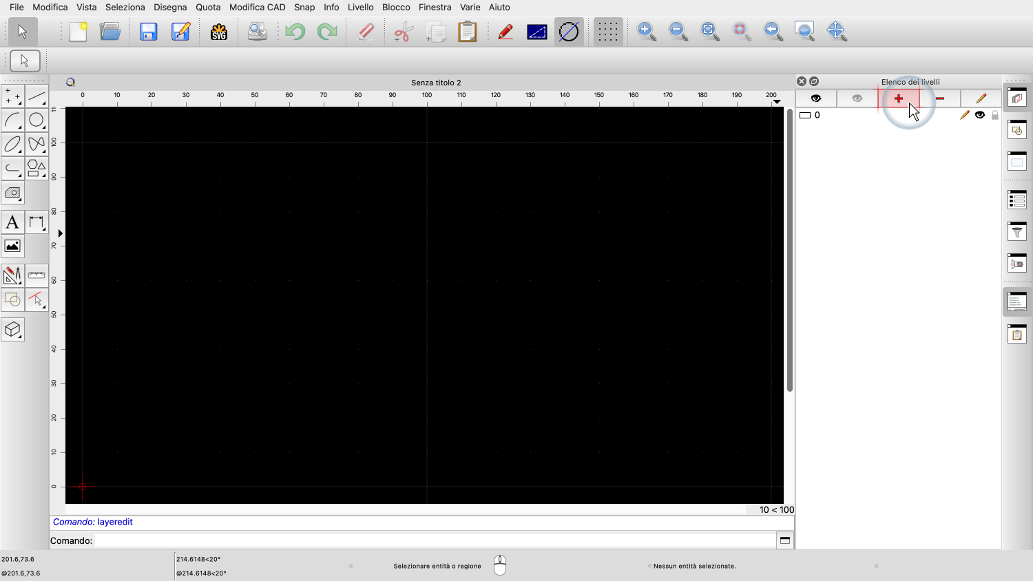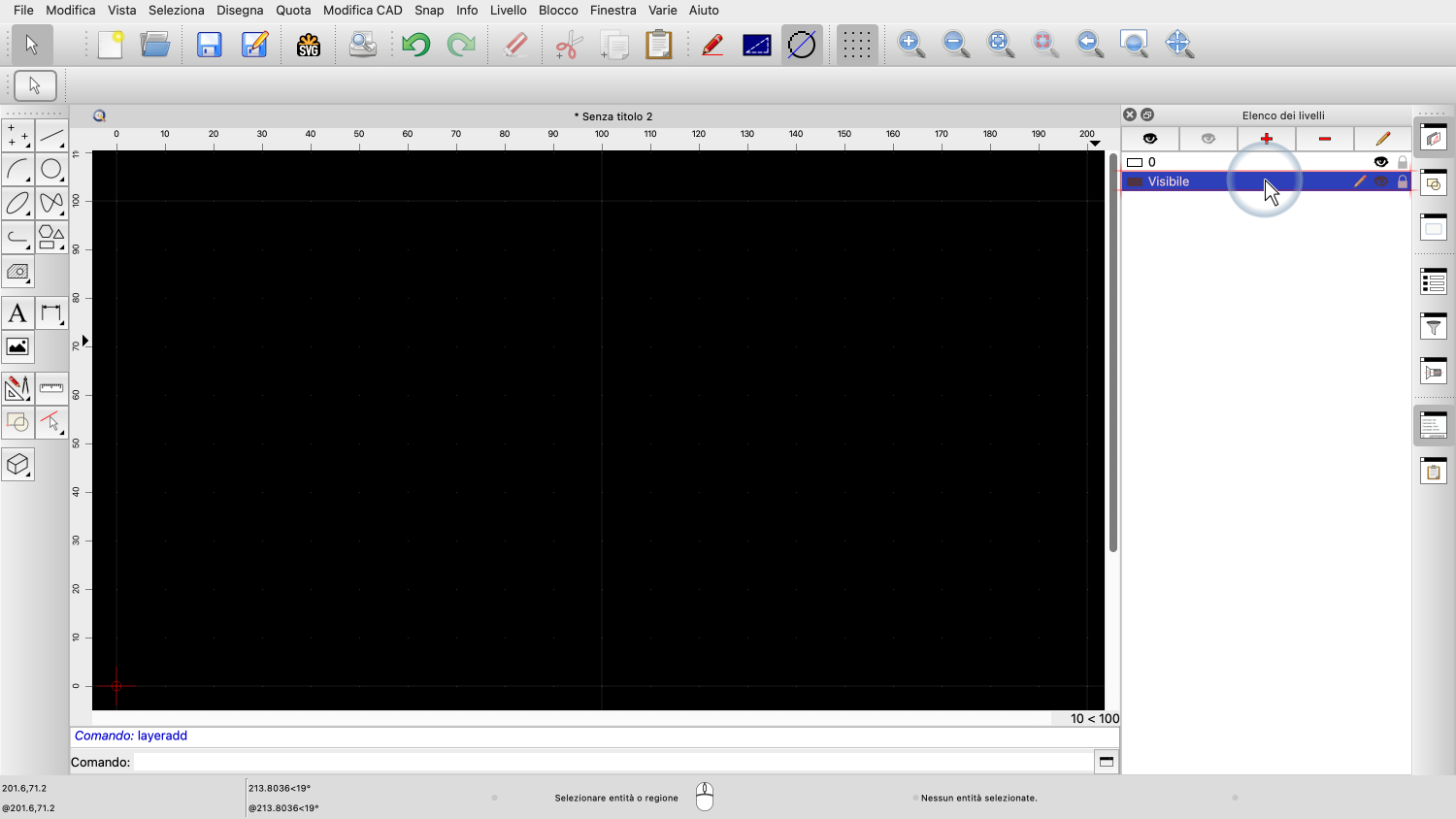 Come generalmente consigliato, lasciamo il livello 0 vuoto e creiamo i nostri livelli per il disegno.