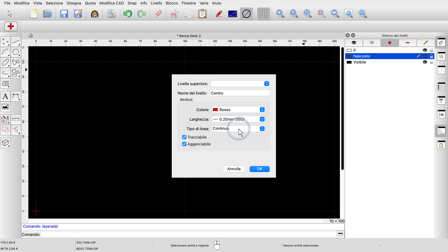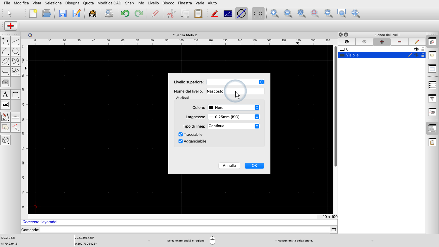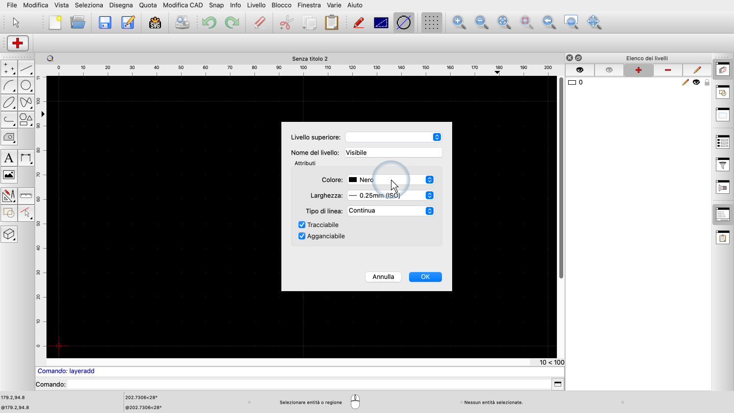 I livelli sono fondamentali per il CAD e li utilizzeremo per tutti i nostri disegni.
