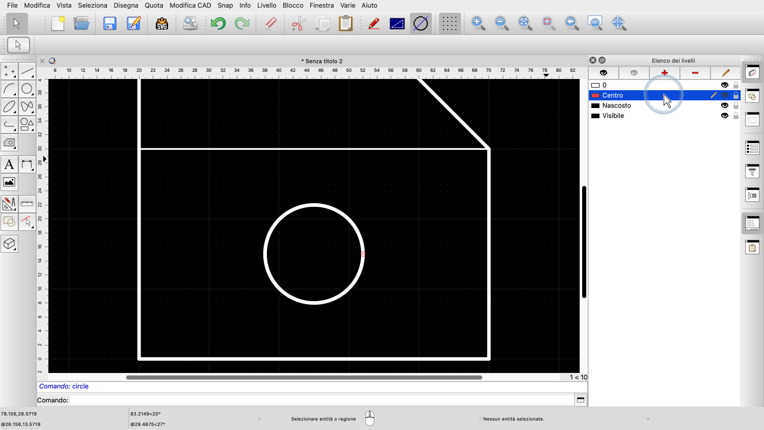Aggiungiamo il cerchio sul livello "Visibile", poiché rappresenta un bordo visibile di una foratura.