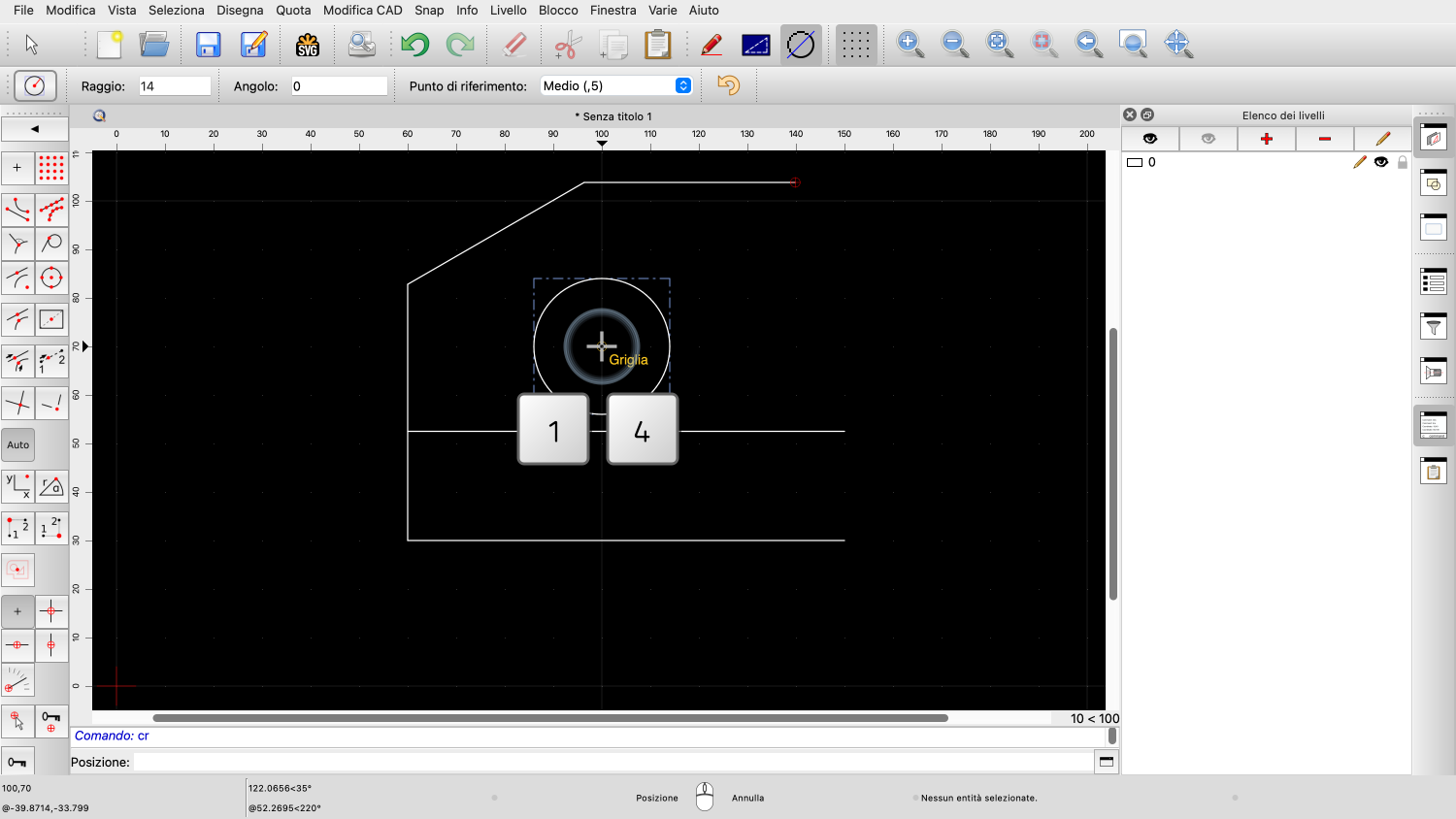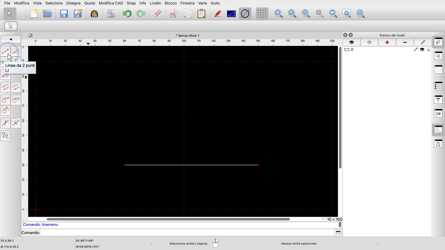 Vediamo di nuovo lo strumento linea, che di solito è uno degli strumenti più utilizzati in QCAD.