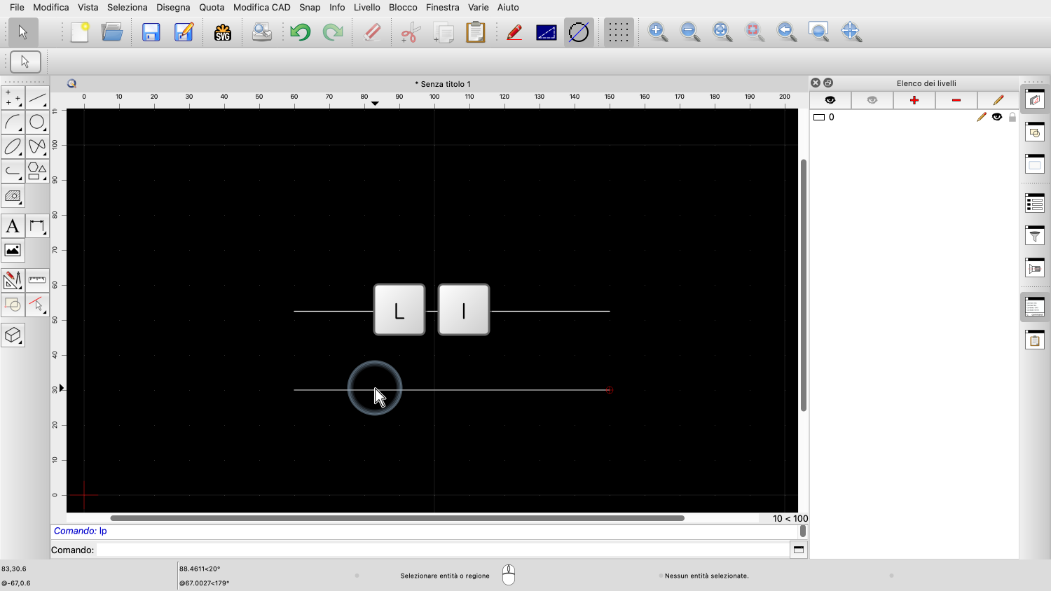 Per avviare lo strumento linea, si può premere prima il tasto "L" e poi il tasto "I".