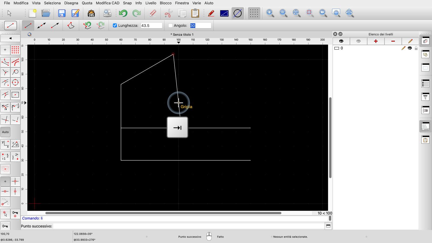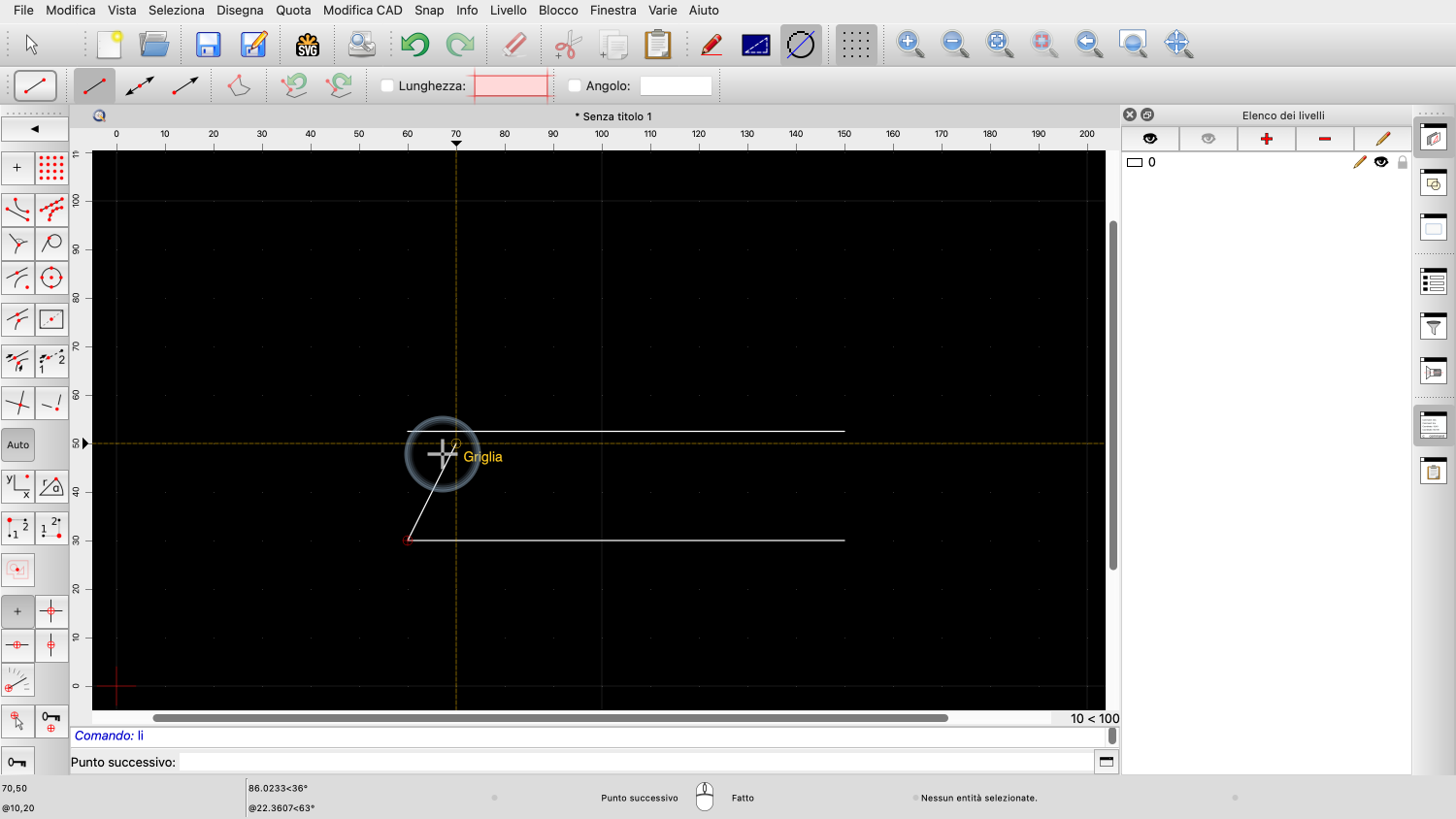 Fissato l'angolo, possiamo ora definire la lunghezza della linea con il mouse.