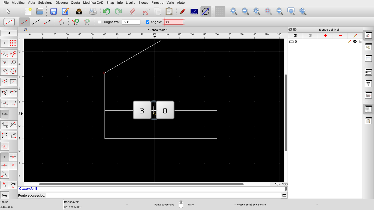 Ora possiamo inserire la lunghezza della linea e, al termine, premere nuovamente il tasto Tab per attivare il campo dell'angolo.