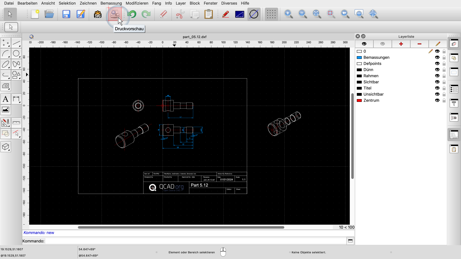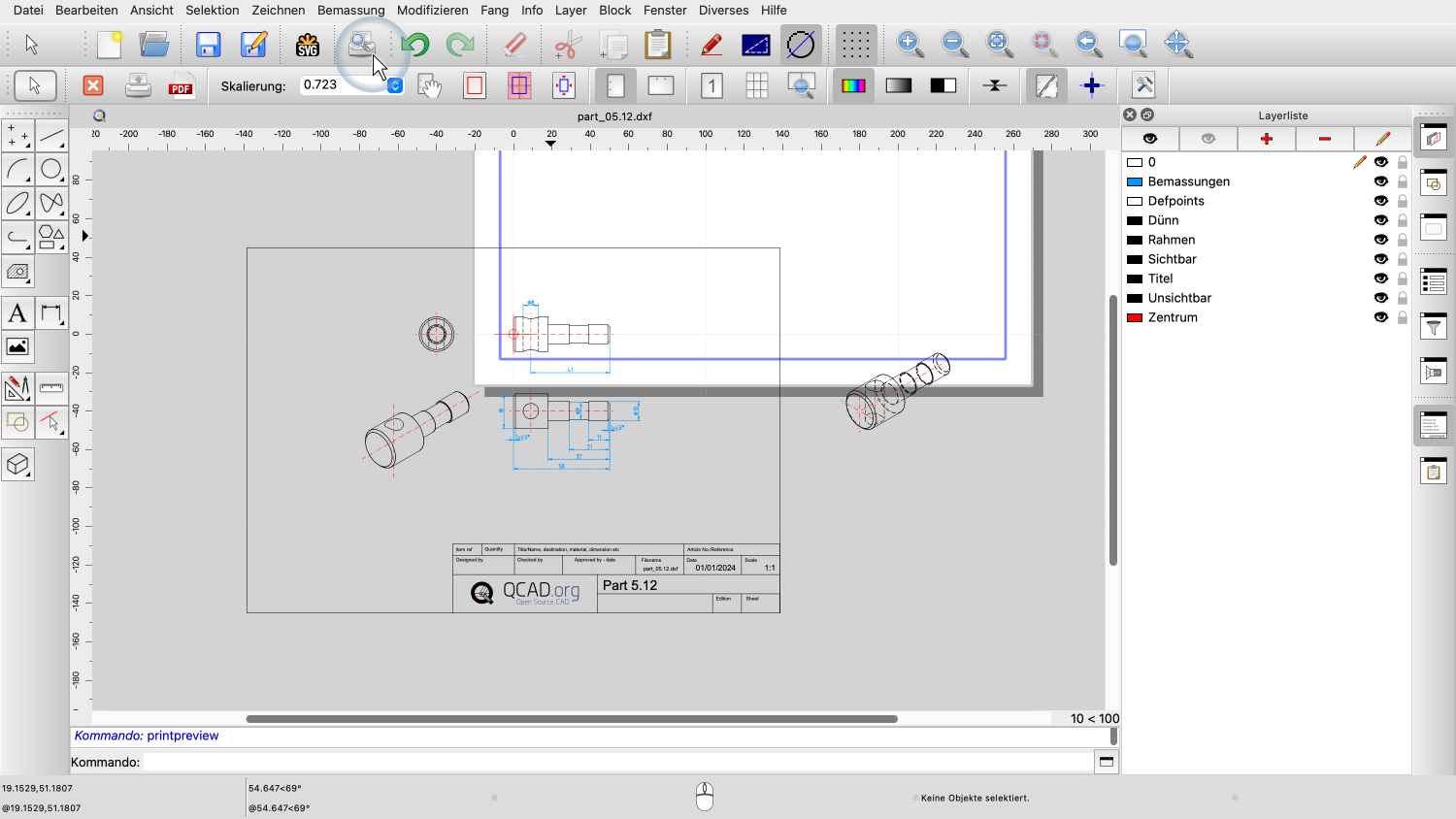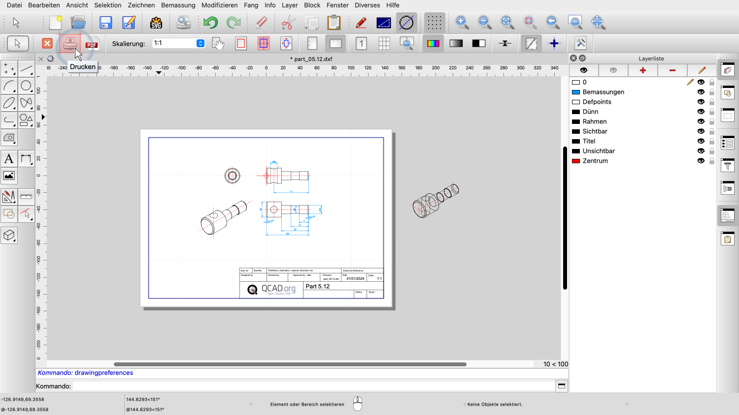 In diesem QCAD Tutorial werden wir eine Zeichnung drucken.