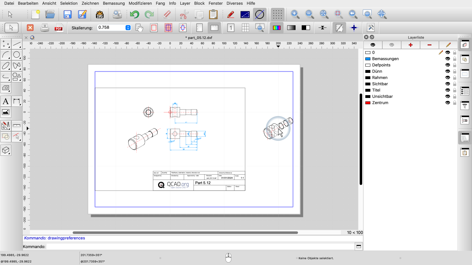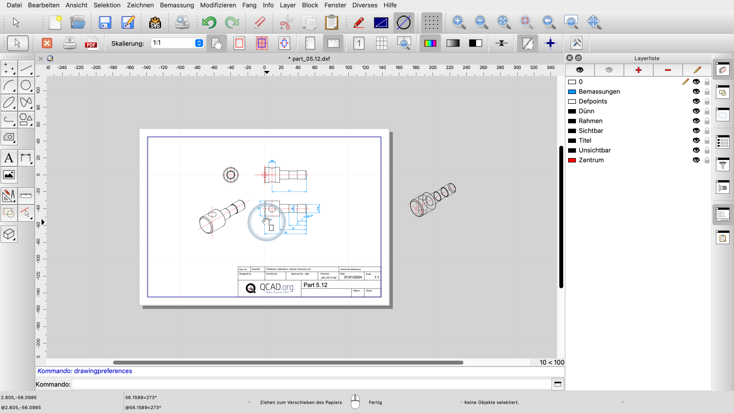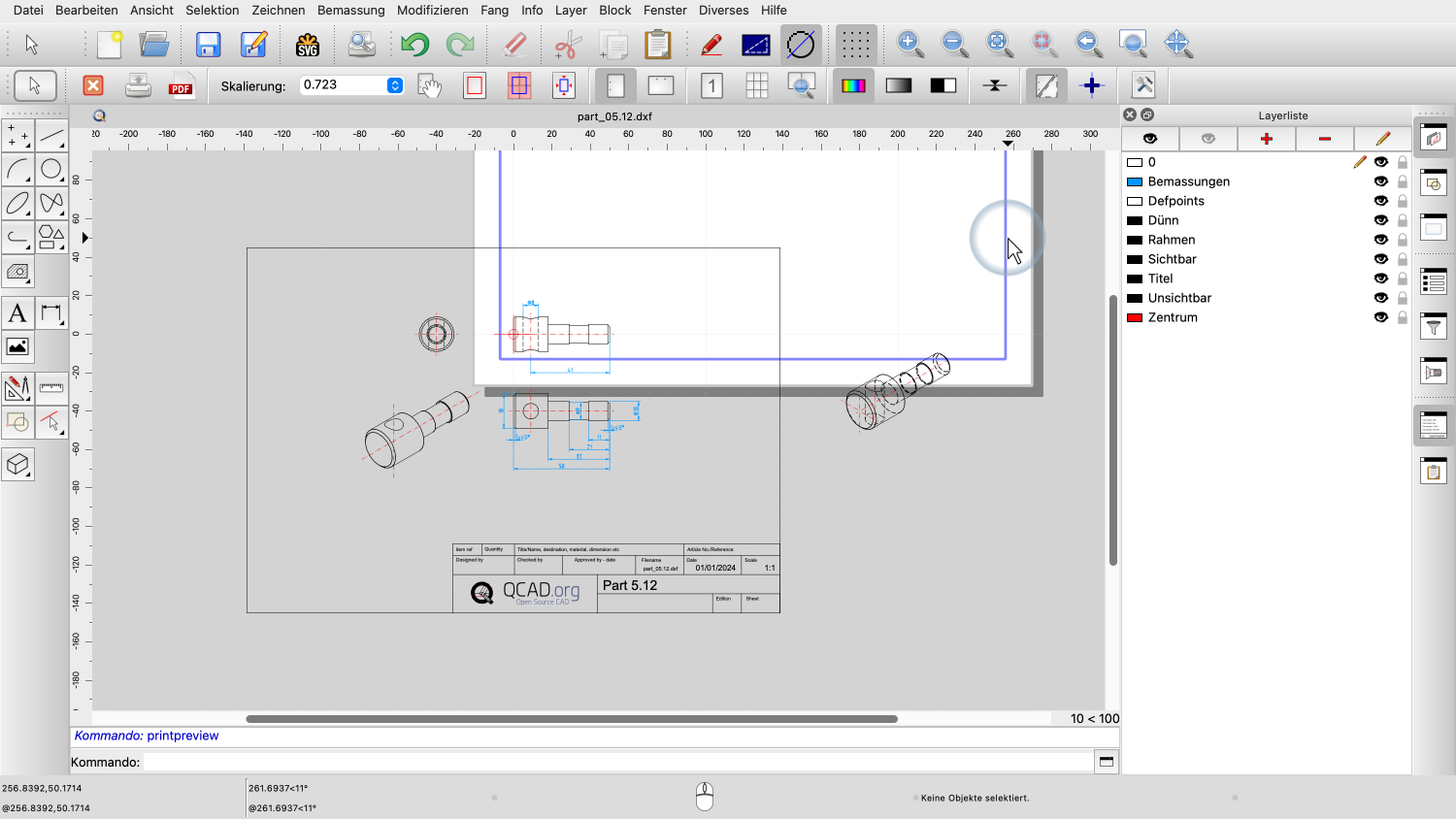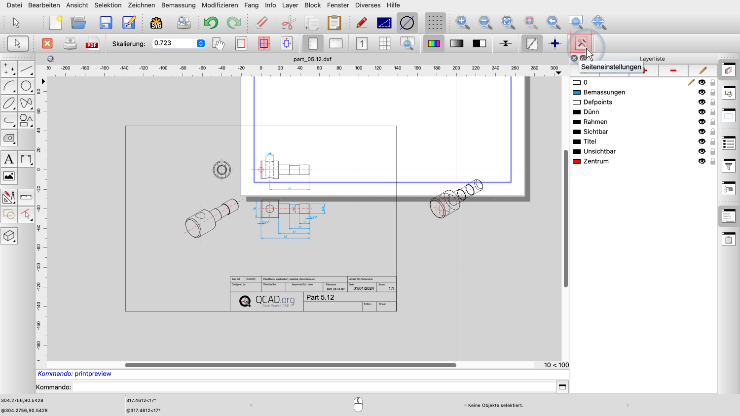 In diesem QCAD Tutorial werden wir eine Zeichnung drucken.