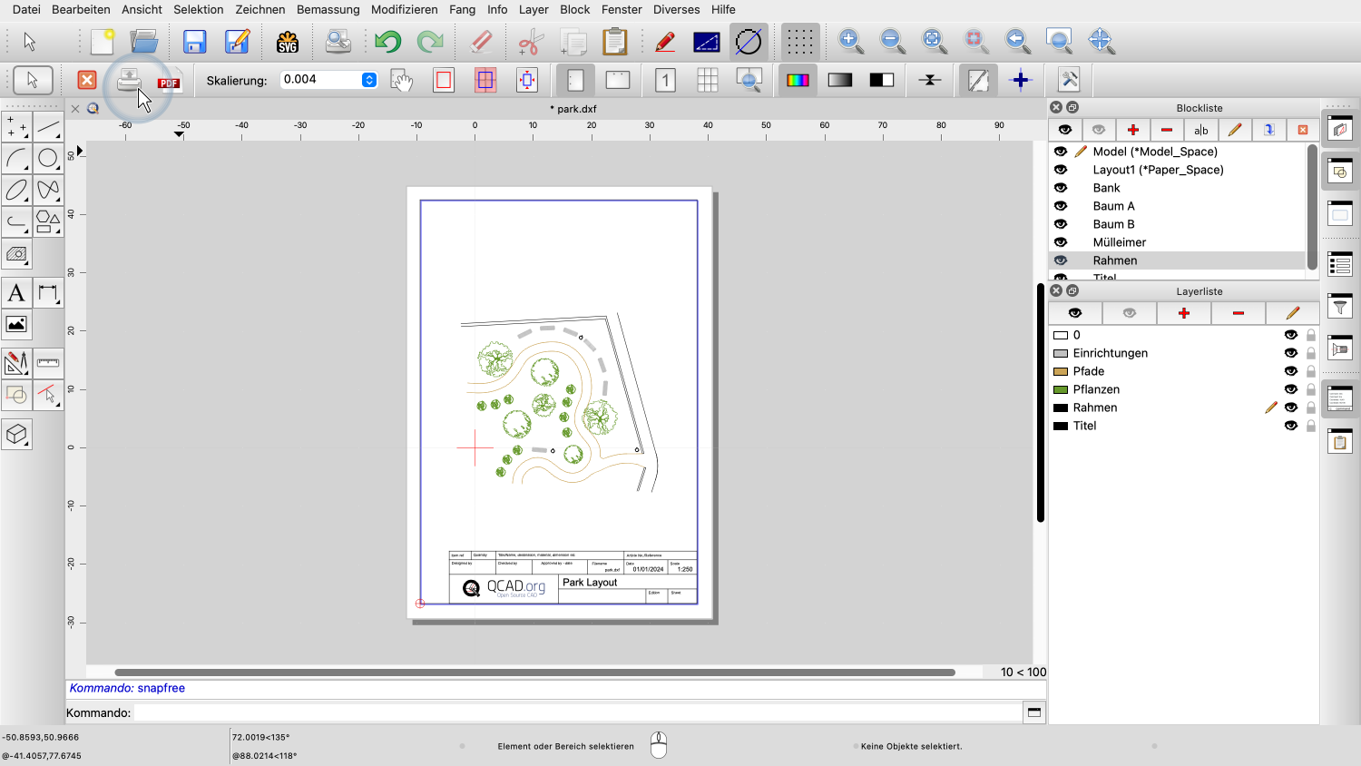 QCAD bietet verschiedene Methoden zum Drucken an.
