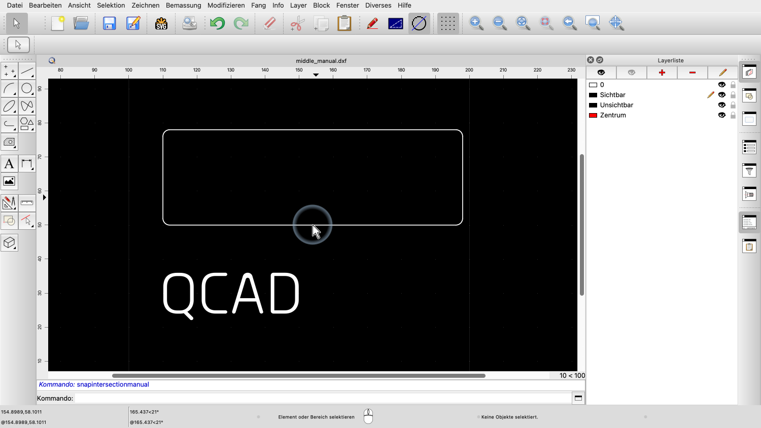 Das bedeutet einfach, dass QCAD automatisch auf den nächstgelegenen, aussagekräftigen Referenzpunkt einrastet.