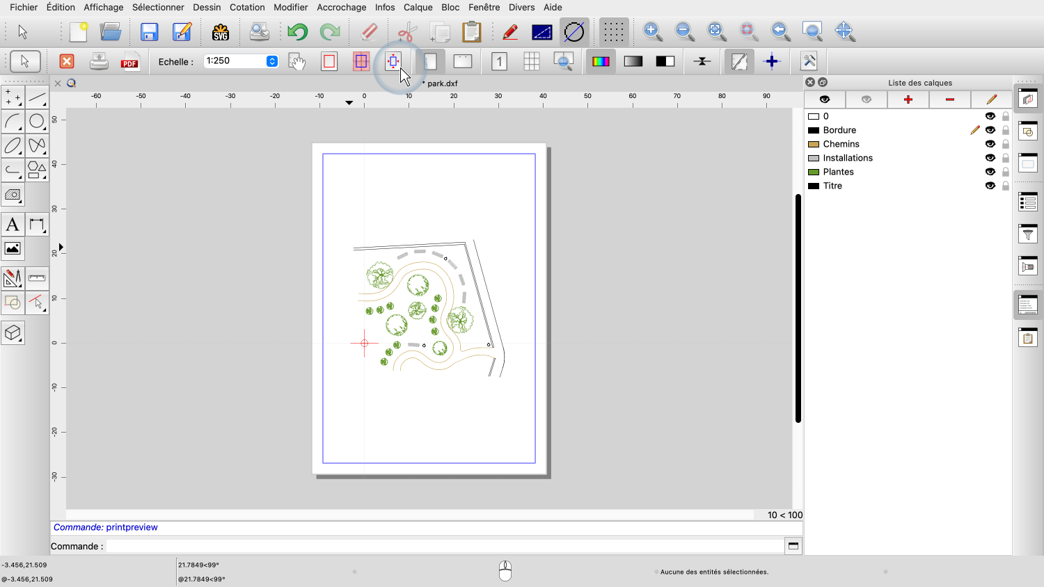 Nous constatons immédiatement que ce dessin n'a pas encore été configuré pour l'impression.